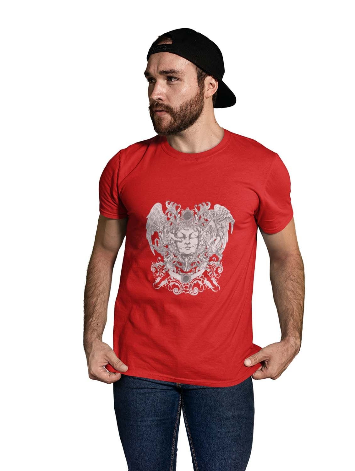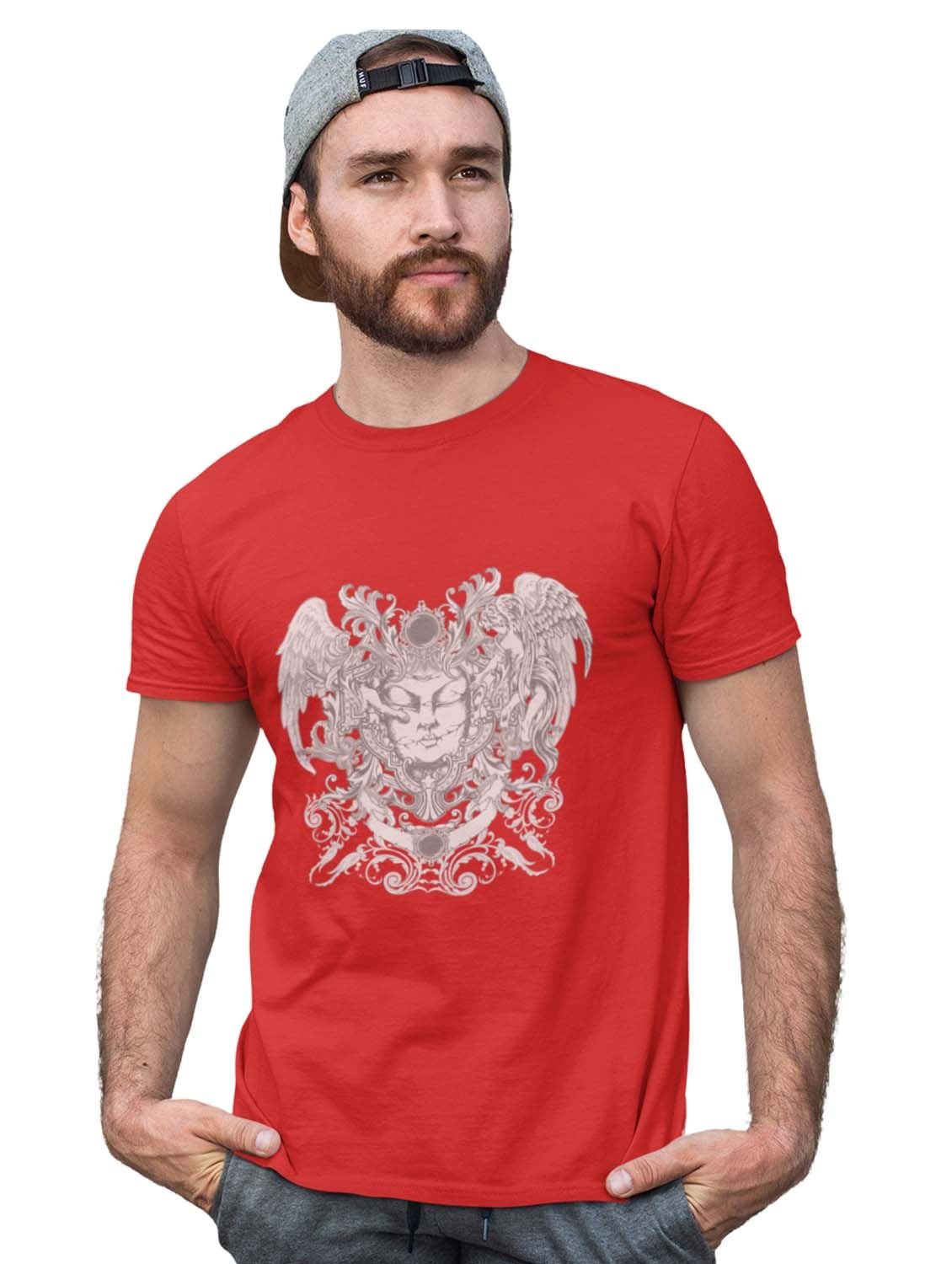 Rods And Roses Red Round Neck Cotton Half Sleeved T-Shirt with Printed Graphics