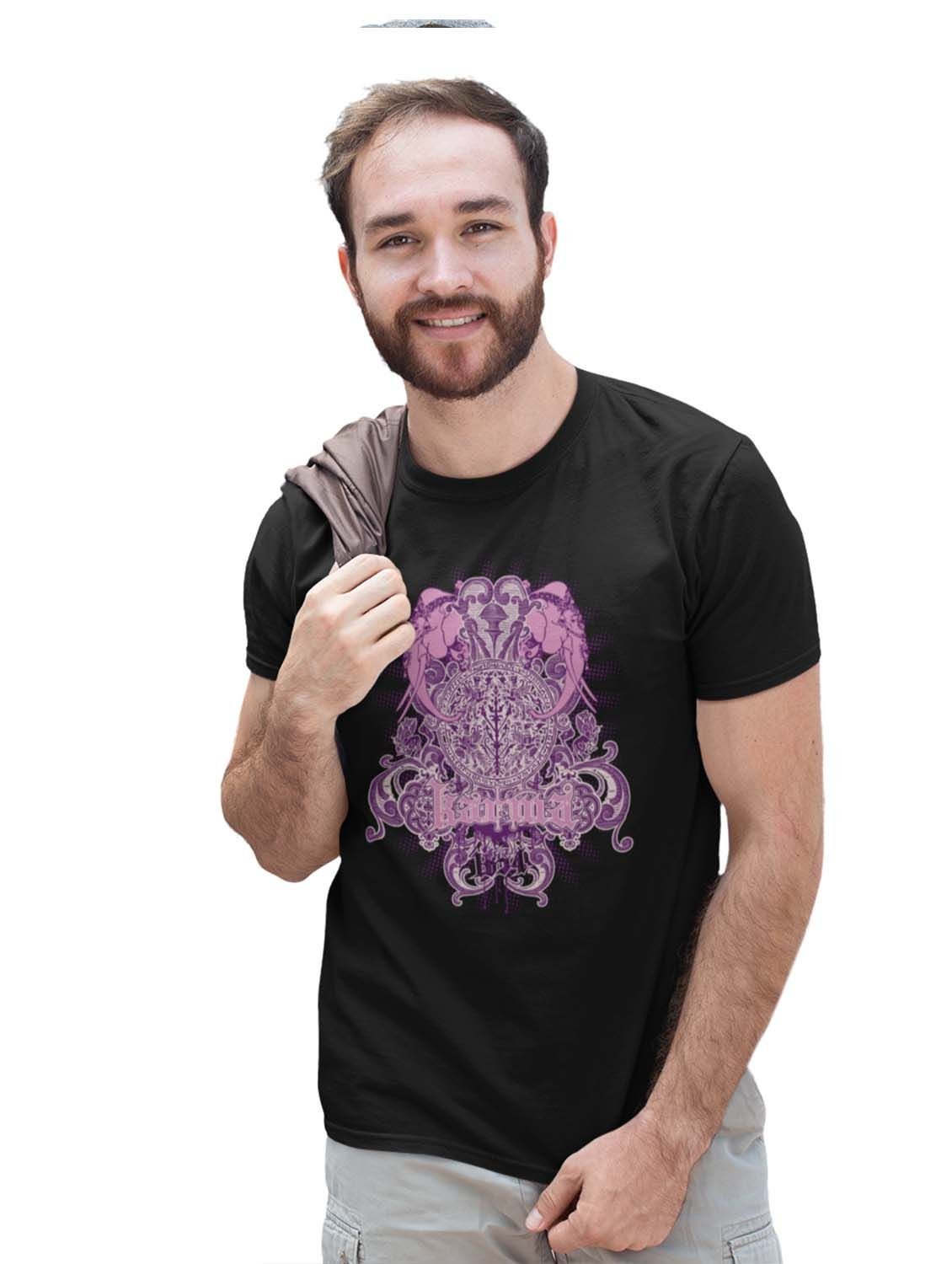 The Power Of Karma Black Round Neck Cotton Half Sleeved T-Shirt with Printed Graphics