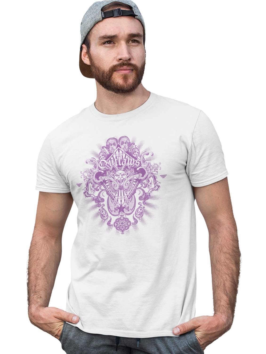 Outlams - Round Neck Tshirt White Round Neck Cotton Half Sleeved T-Shirt with Printed Graphics