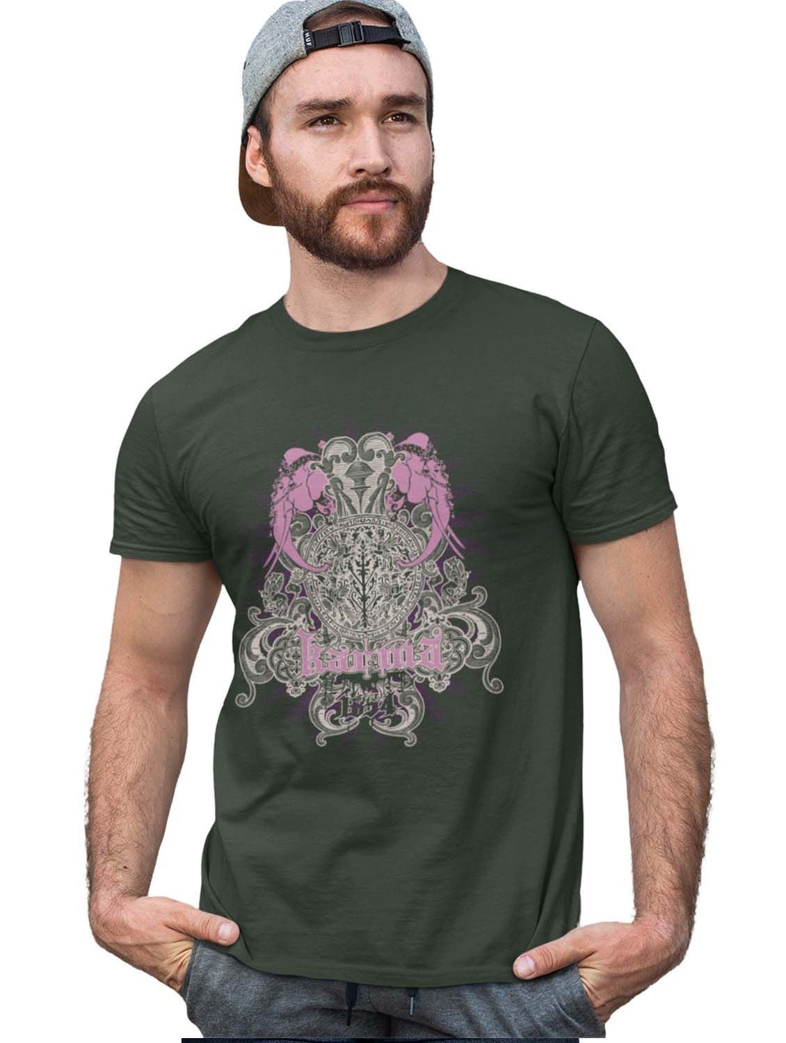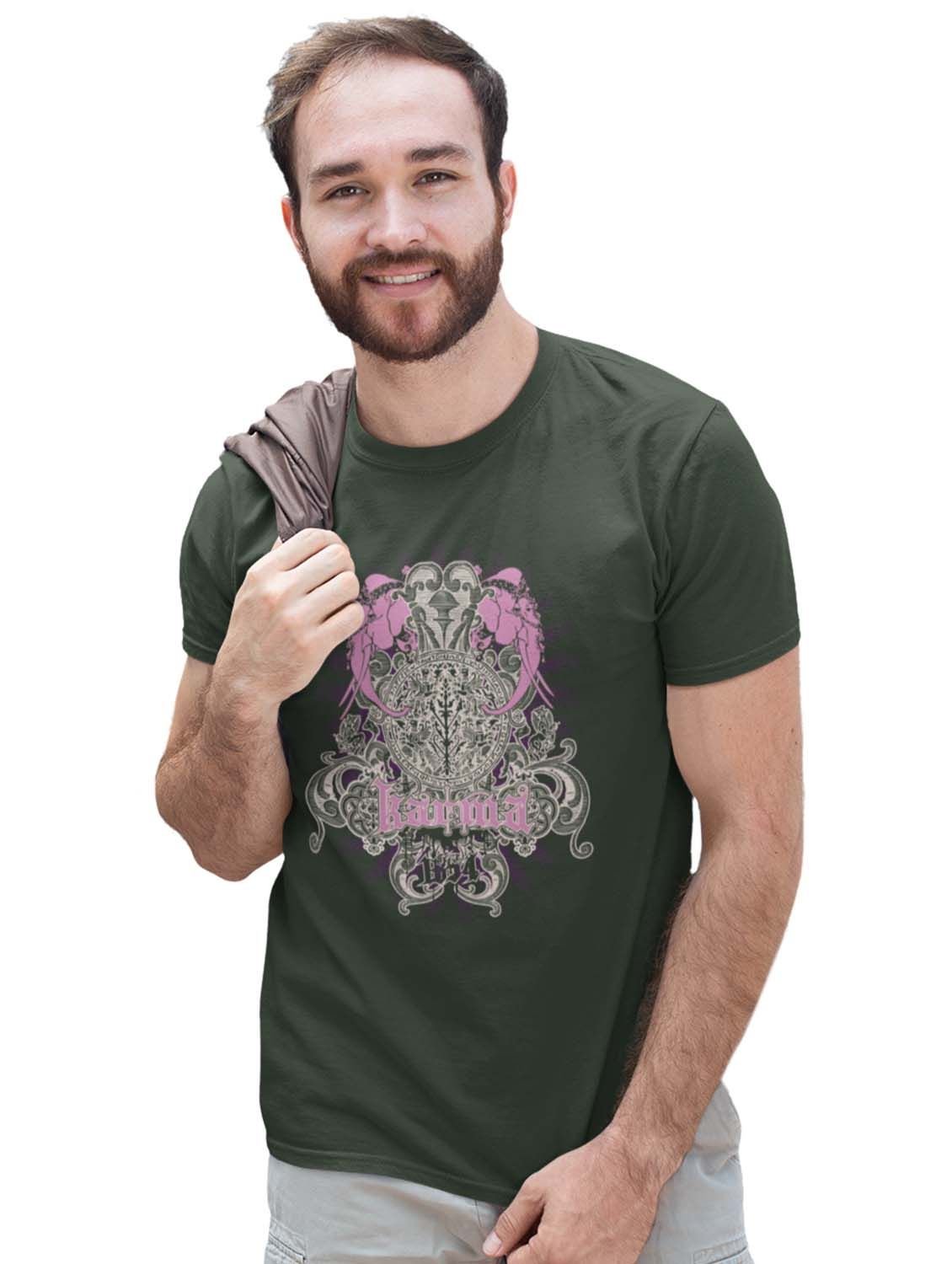 The Power Of Karma Green Round Neck Cotton Half Sleeved T-Shirt with Printed Graphics