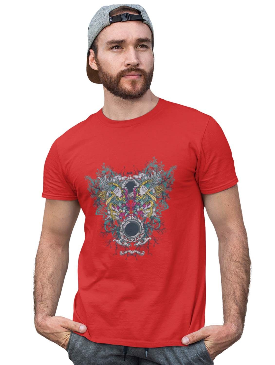 Outlams Red Round Neck Cotton Half Sleeved T-Shirt with Printed Graphics