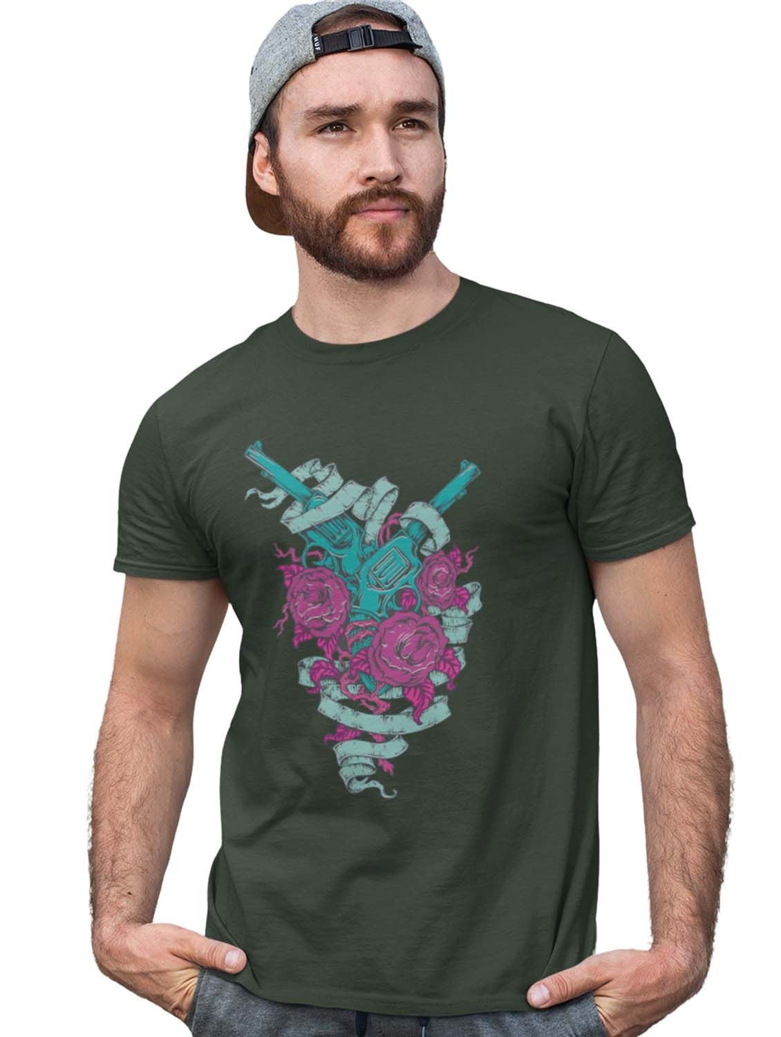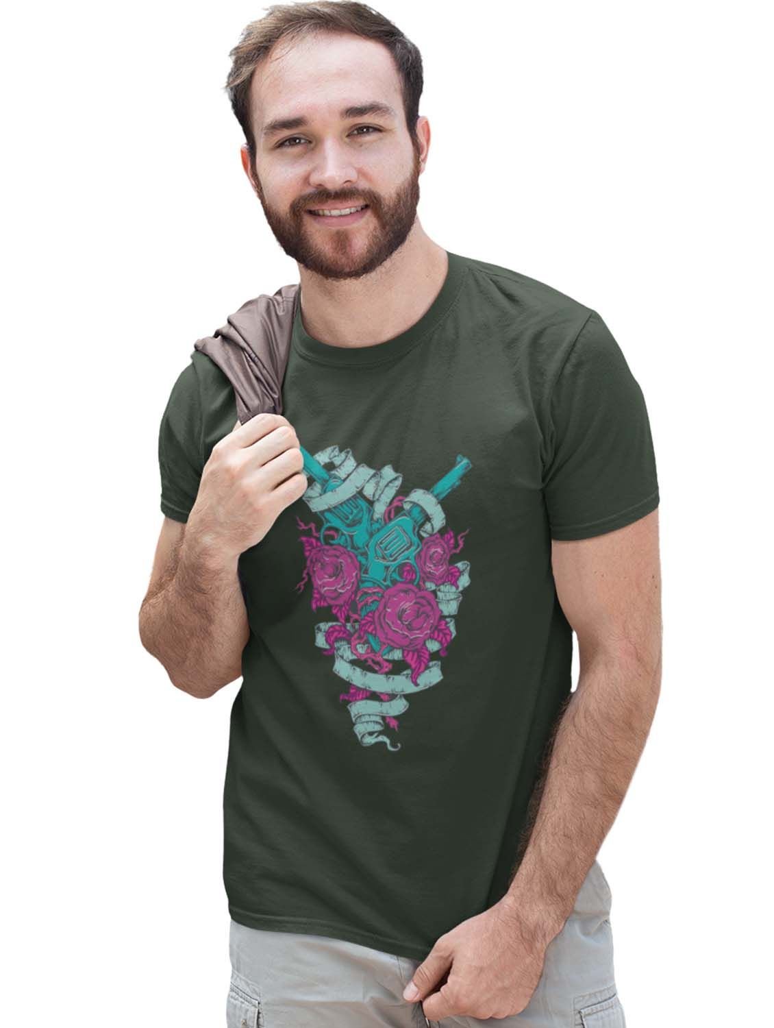 The Shooter And Roses Green Round Neck Cotton Half Sleeved T-Shirt with Printed Graphics