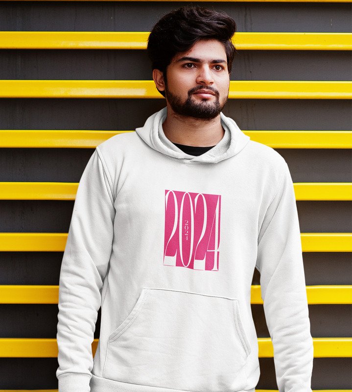 2024 New Year, White Printed Hoodies For Mens On New Year Theme Best Gift For New Year