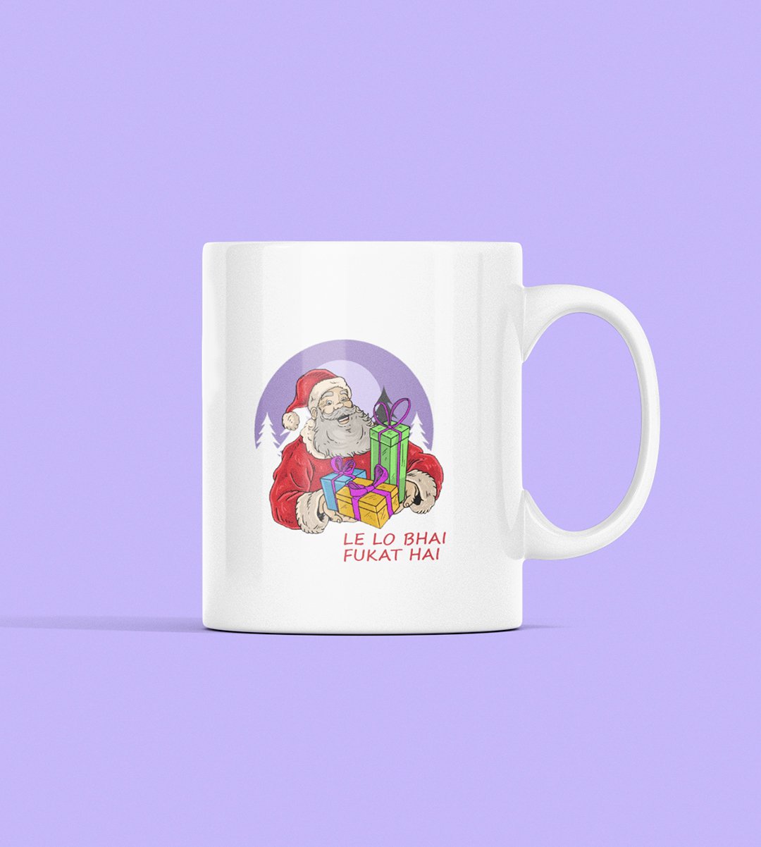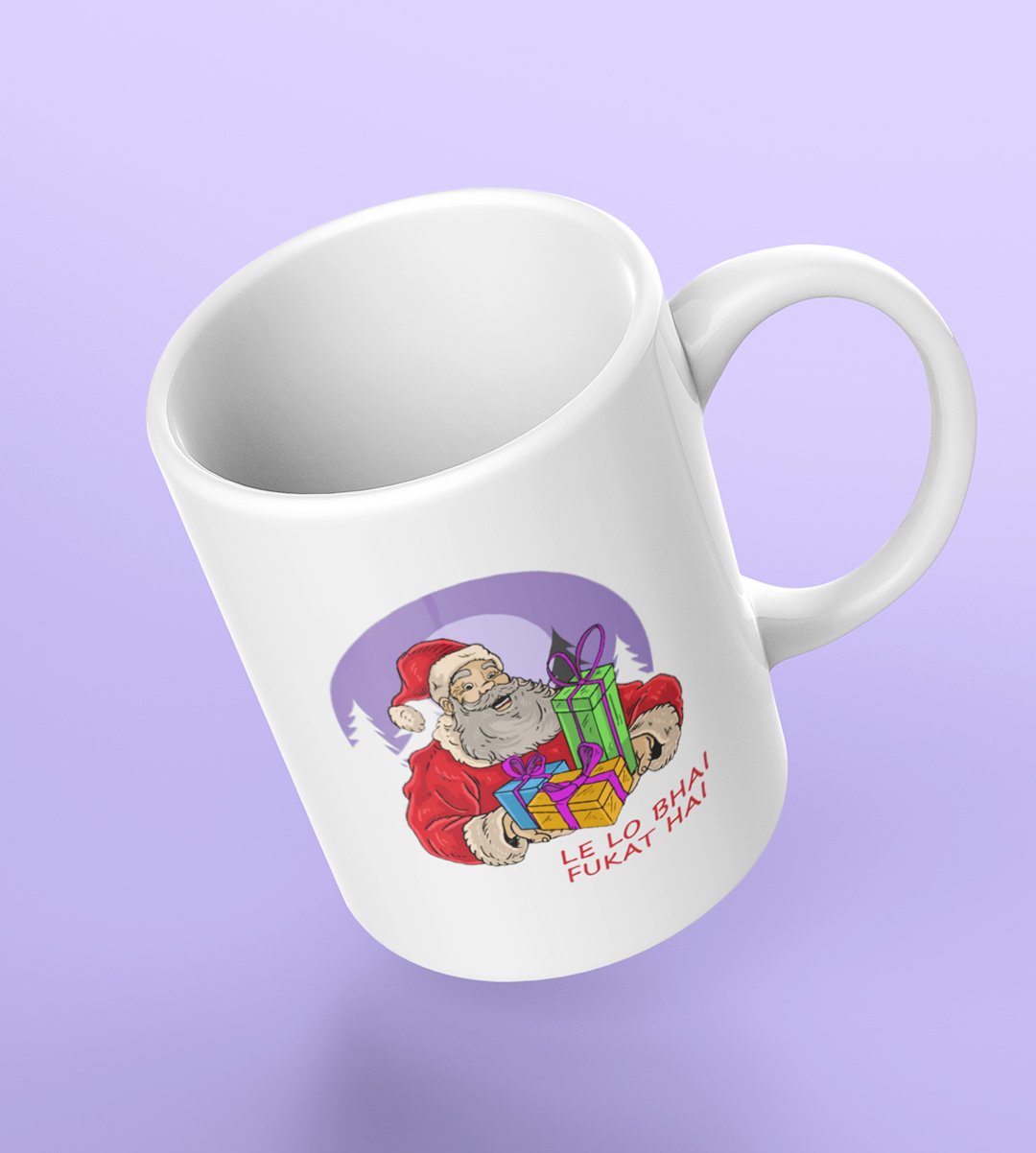Ho-Ho-Hilarious: 'Lelo Bhai, Fukat Hai!' Santa Meme Coffee Mug