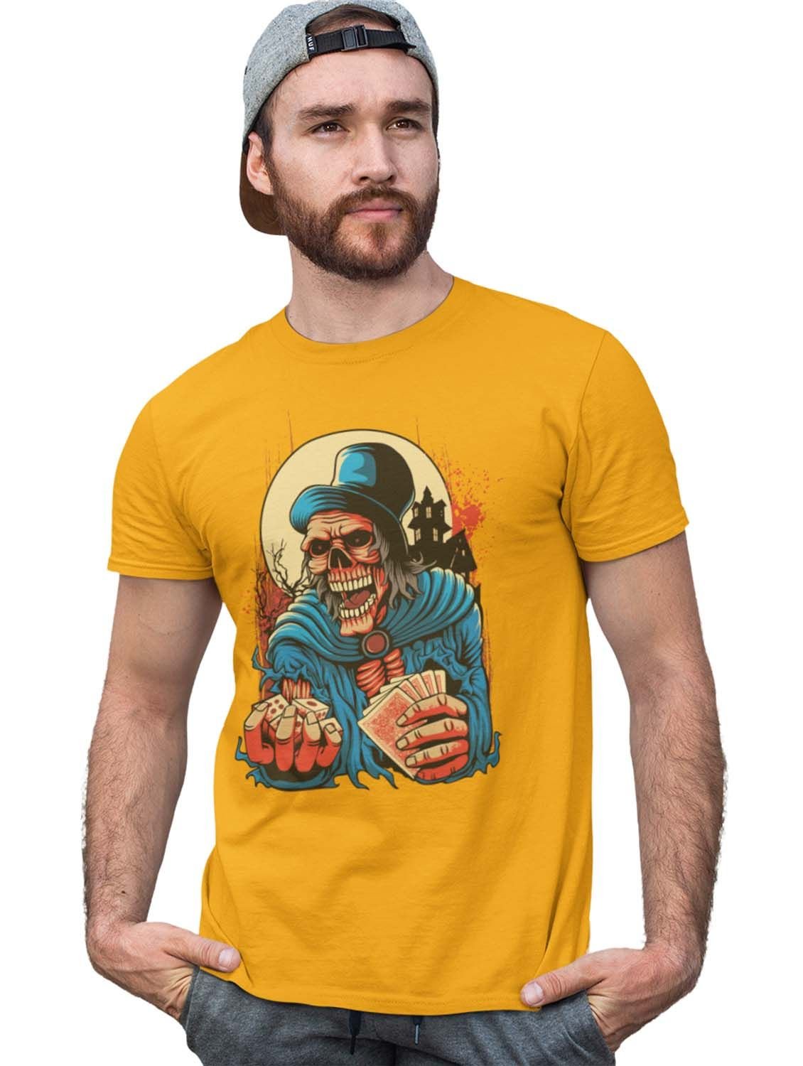 Game Of Life Yellow Round Neck Cotton Half Sleeved T-Shirt with Printed Graphics