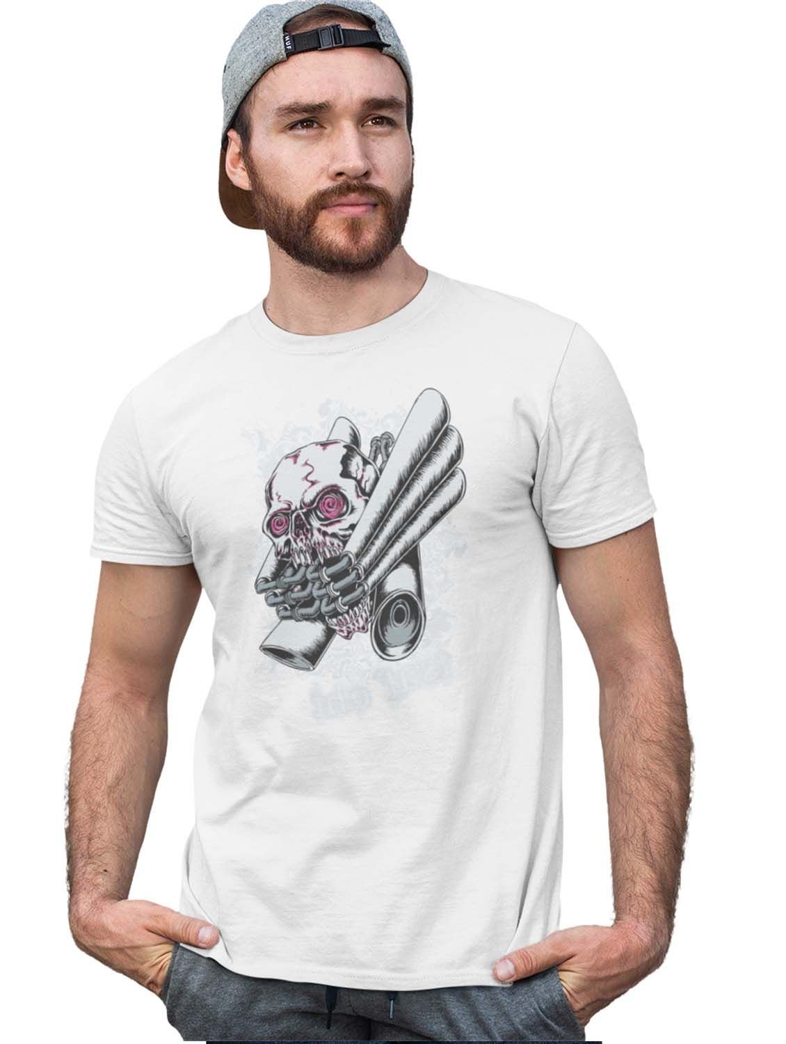 The Deathheads White Round Neck Cotton Half Sleeved T-Shirt with Printed Graphics
