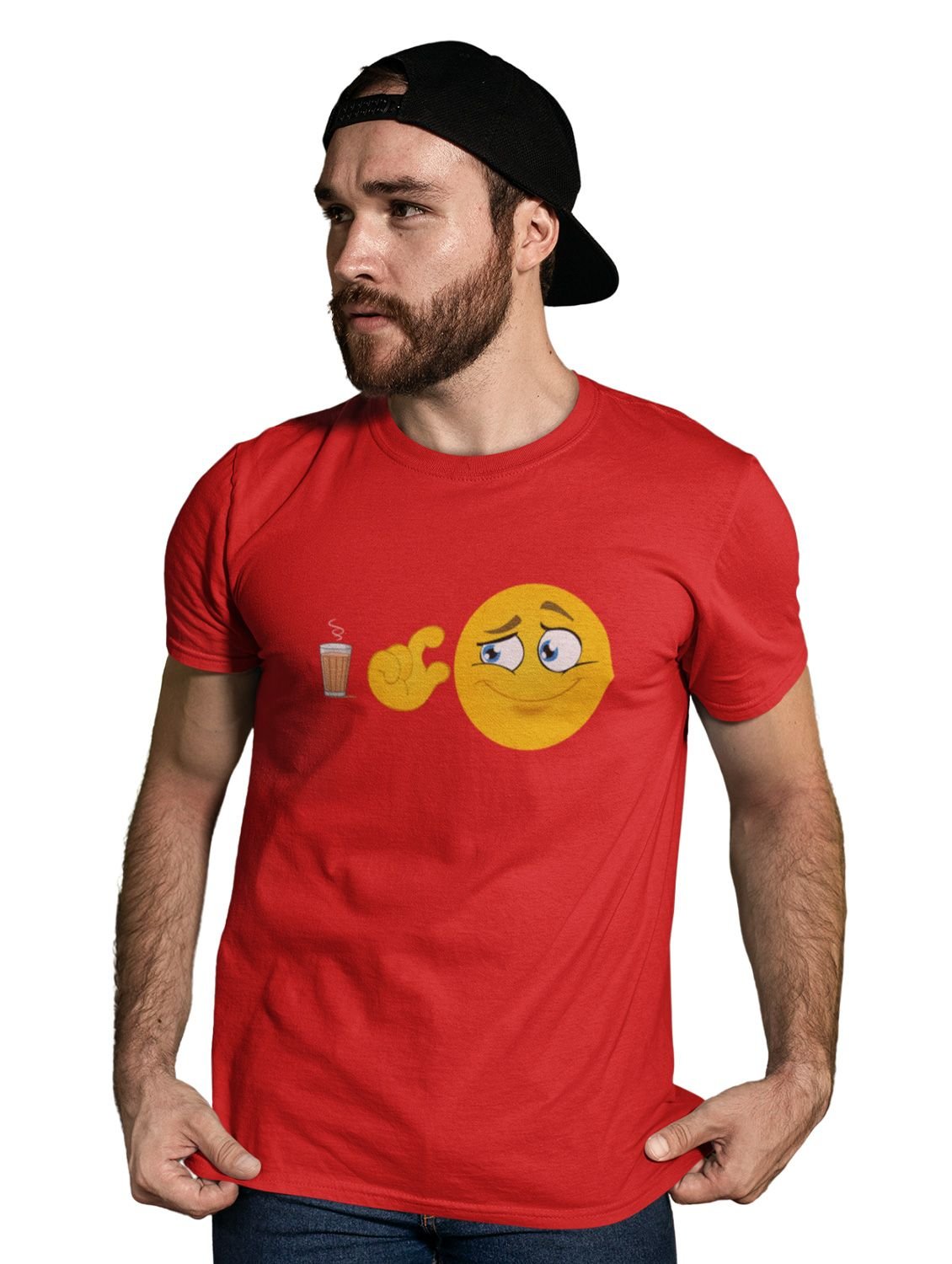 A Cup of Tea for Me Printed T-shirt (Red) - Clothes for Emoji Lovers - Foremost Gifting Material for Your Friends and Close Ones