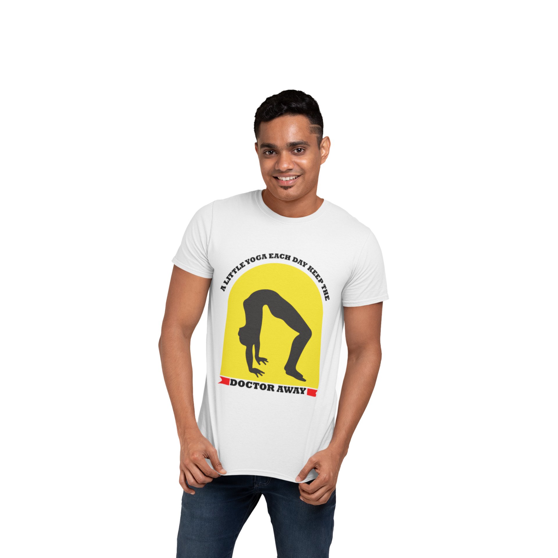 A little yoga each day keeps the doctor away - White - Comfortable Yoga T-shirts for Yoga Printed Men's T-shirts White