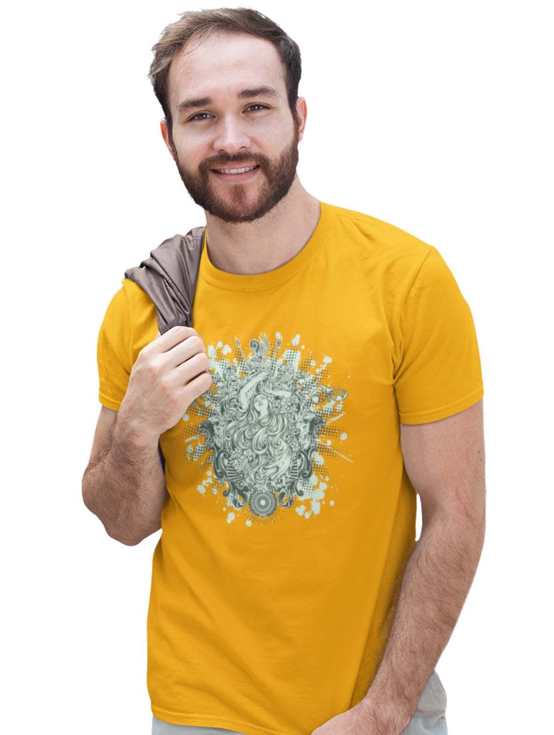 The Cursed Mermaid Yellow Round Neck Cotton Half Sleeved T-Shirt with Printed Graphics