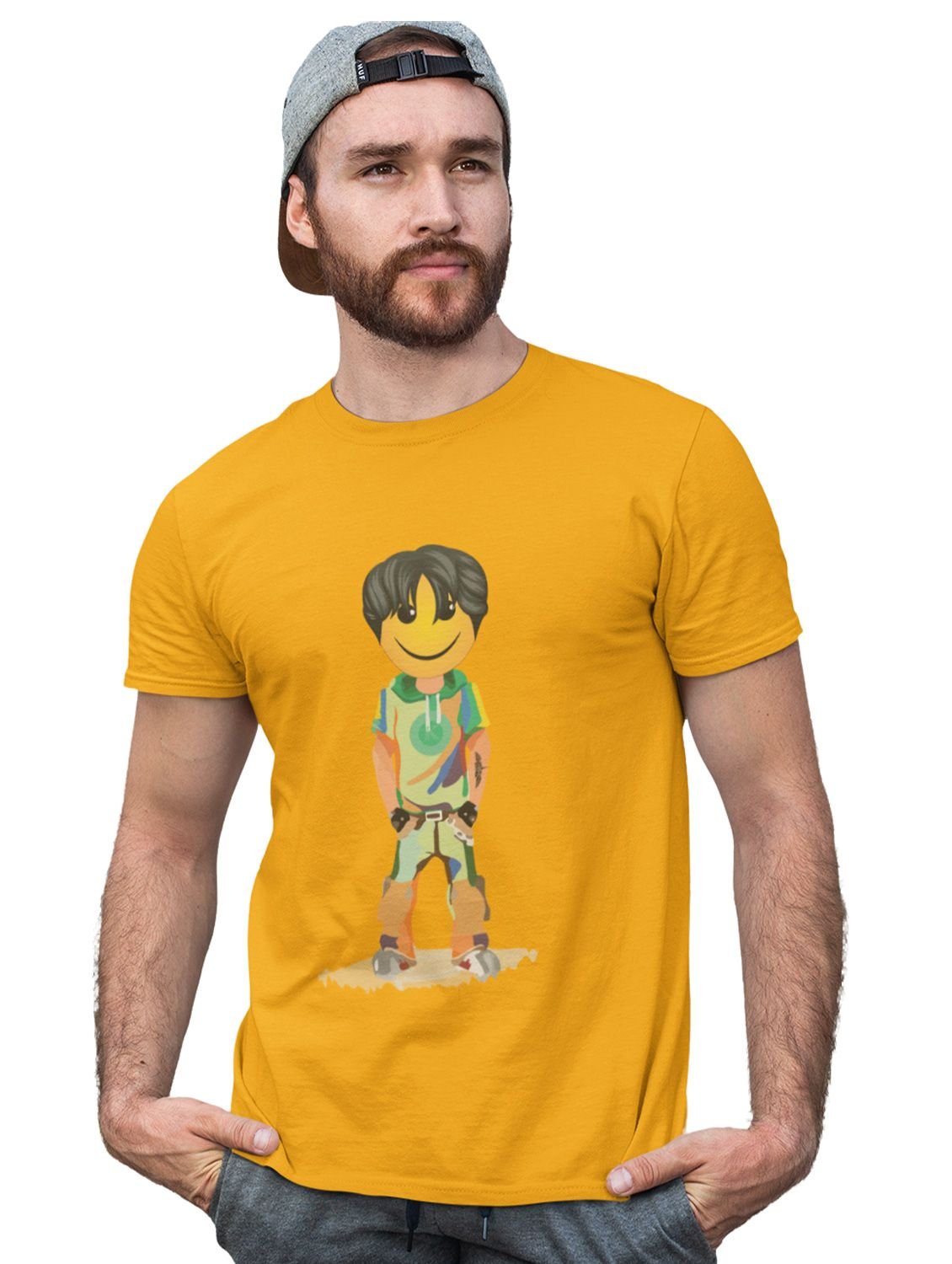 A Young Standing Emoji Boy Printed T-shirt (Yellow) - Clothes for Emoji Lovers - Suitable for Fun Events - Foremost Gifting Material for Your Friends and Close Ones