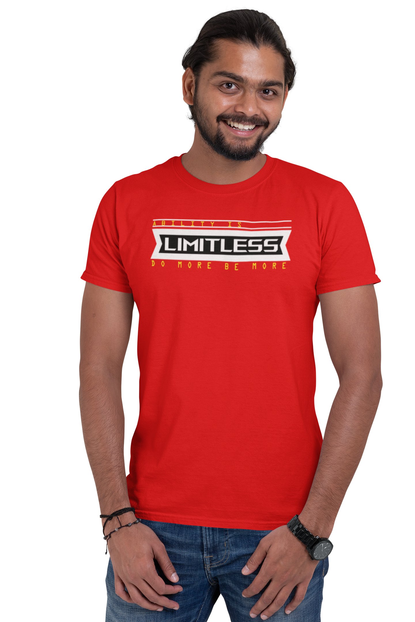 Ability Is Limitless, Do More, Be More, (BG Blue and Yellow), Round Neck Gym Tshirt (Red Tshirt) - Foremost Gifting Material for Your Friends and Close Ones