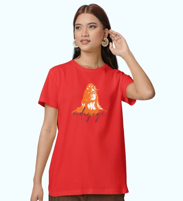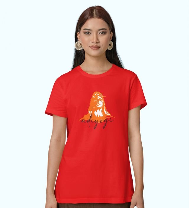 Adiyogi Red Round Neck Cotton Half Sleeved Women T-Shirt with Printed Graphics
