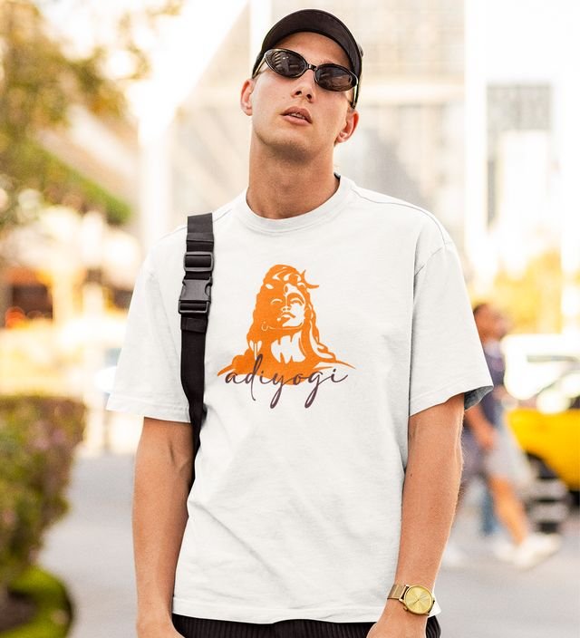 Adiyogi White Round Neck Cotton Half Sleeved Men T-Shirt with Printed Graphics