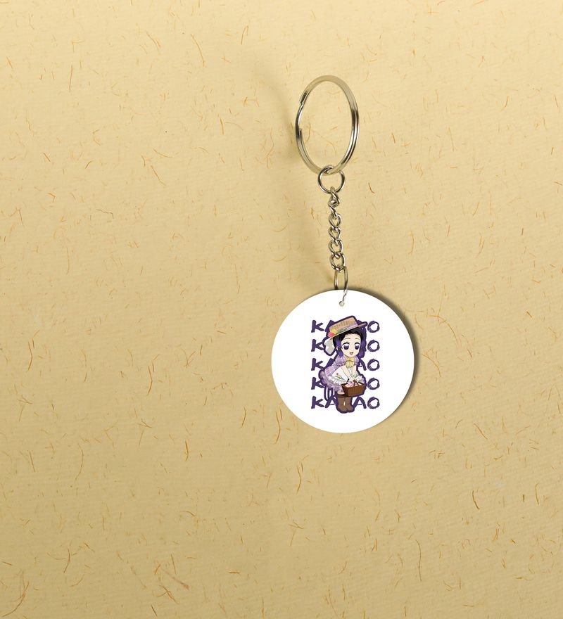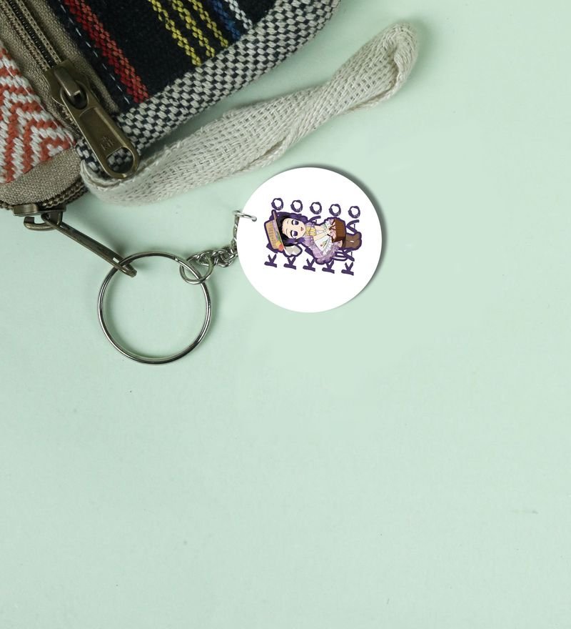 Adorable Character Design With Bow Printed Round Keychain Pack of 2