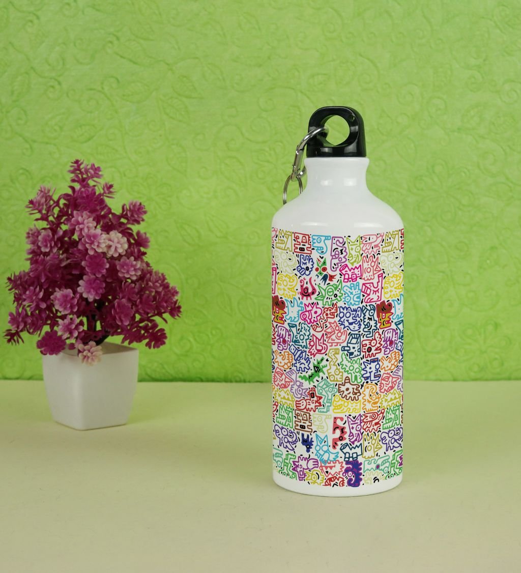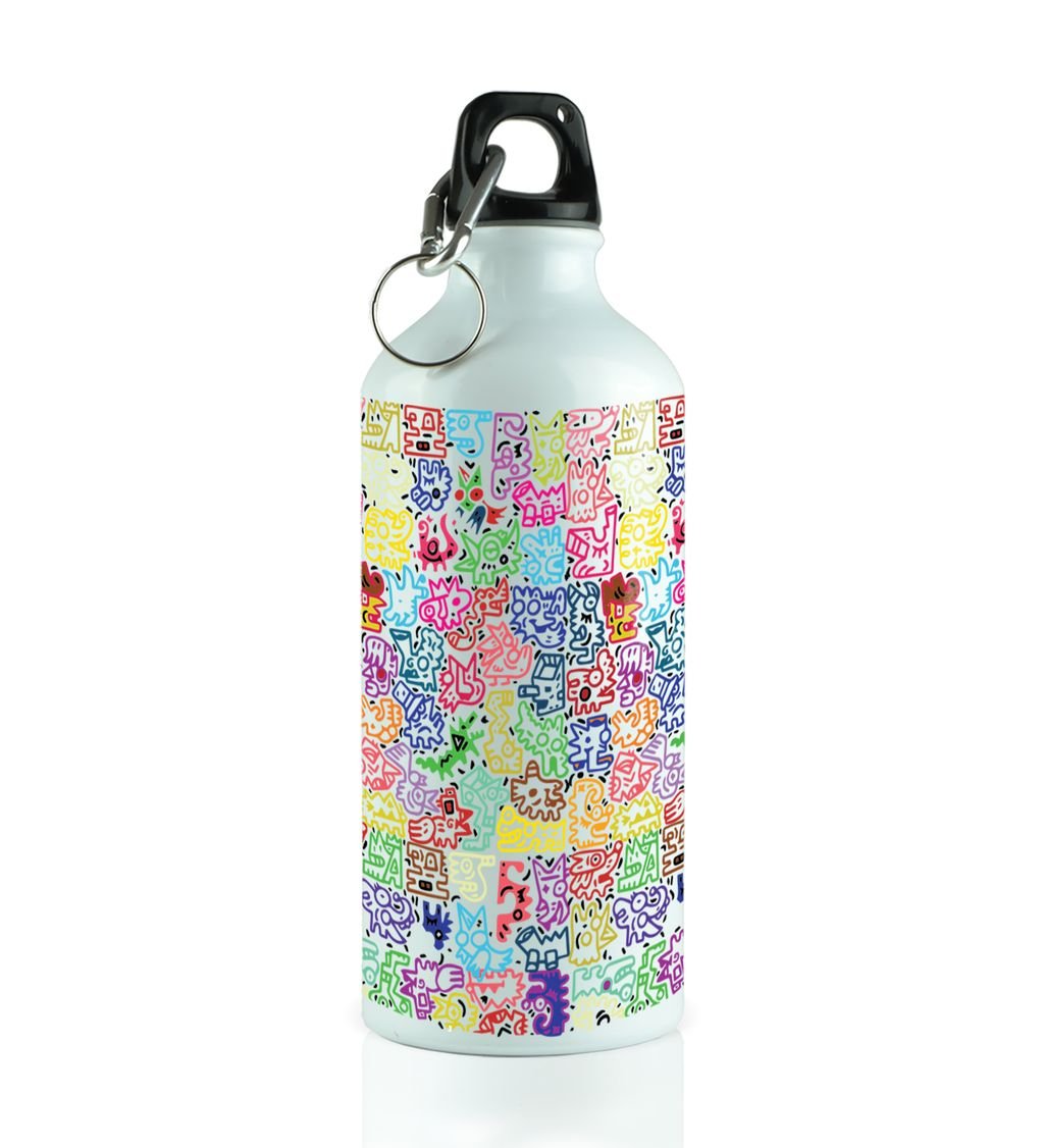 Adorable Mini Monsters in Colorful Vector Graphics on Aluminium Water Bottle 600ml