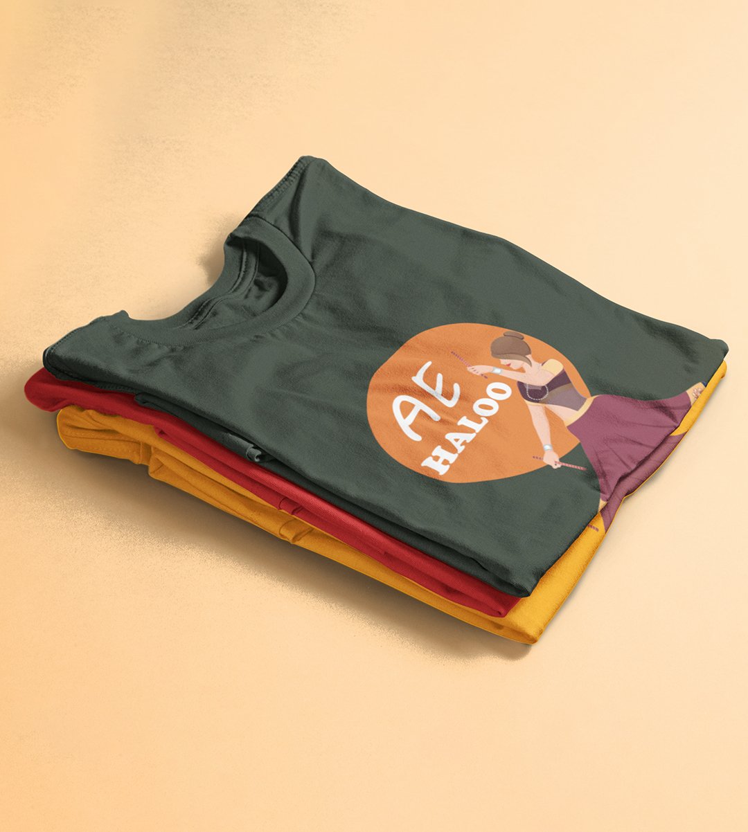 Ae haloo printed unisex adults round neck cotton half-sleeve green tshirt specially for Navratri festival/ Durga puja