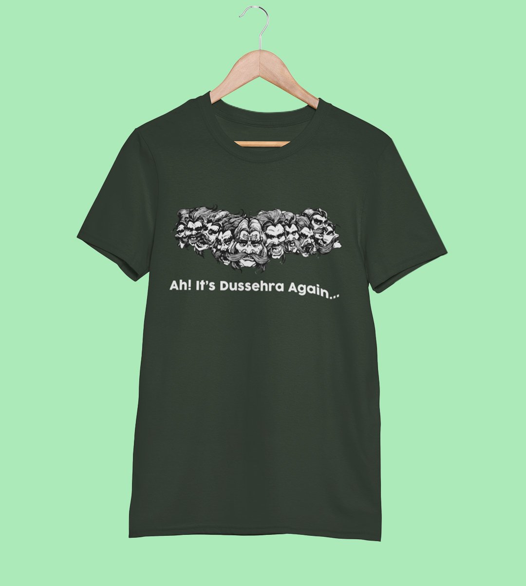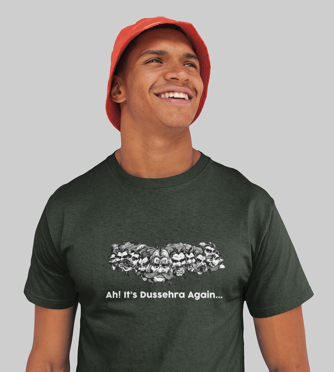 Ah! its dussehra again printed unisex adults round neck cotton half-sleeve green tshirt specially for Navratri festival/ Durga puja