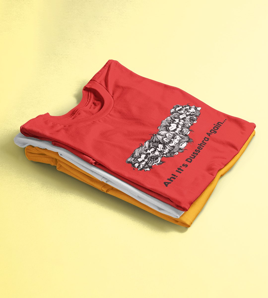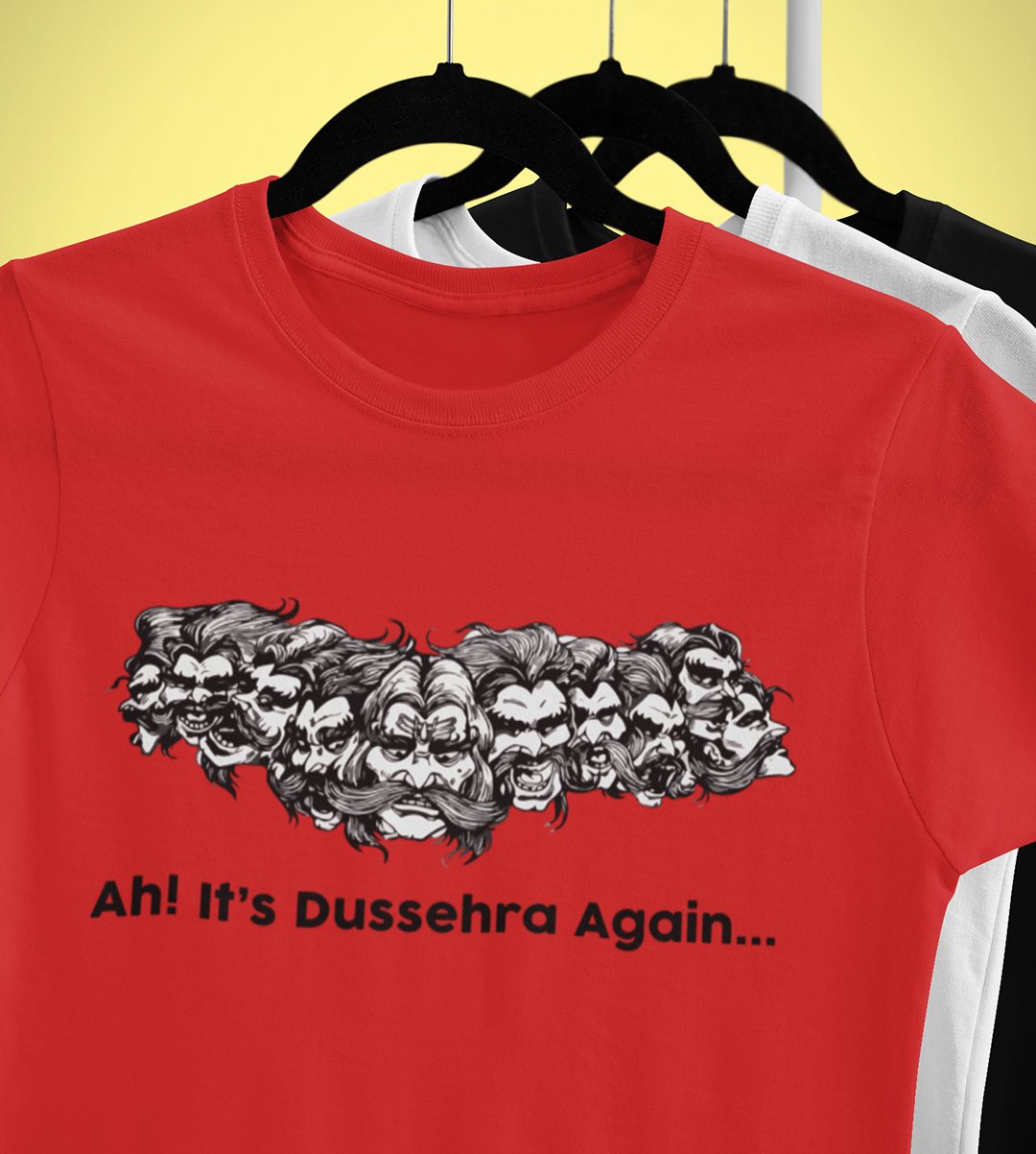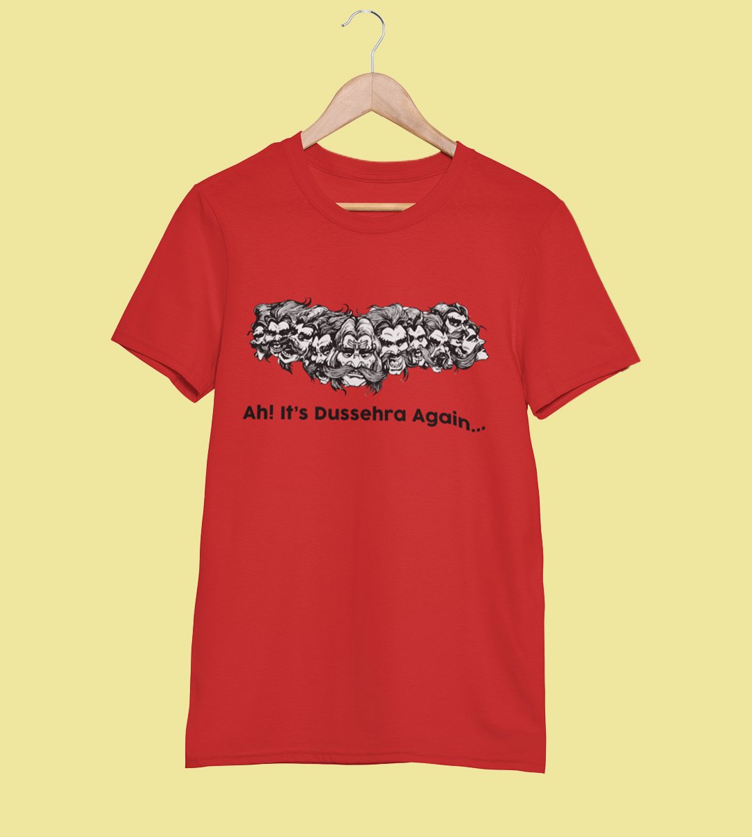 Ah! its dussehra again printed unisex adults round neck cotton half-sleeve red tshirt specially for Navratri festival/ Durga puja