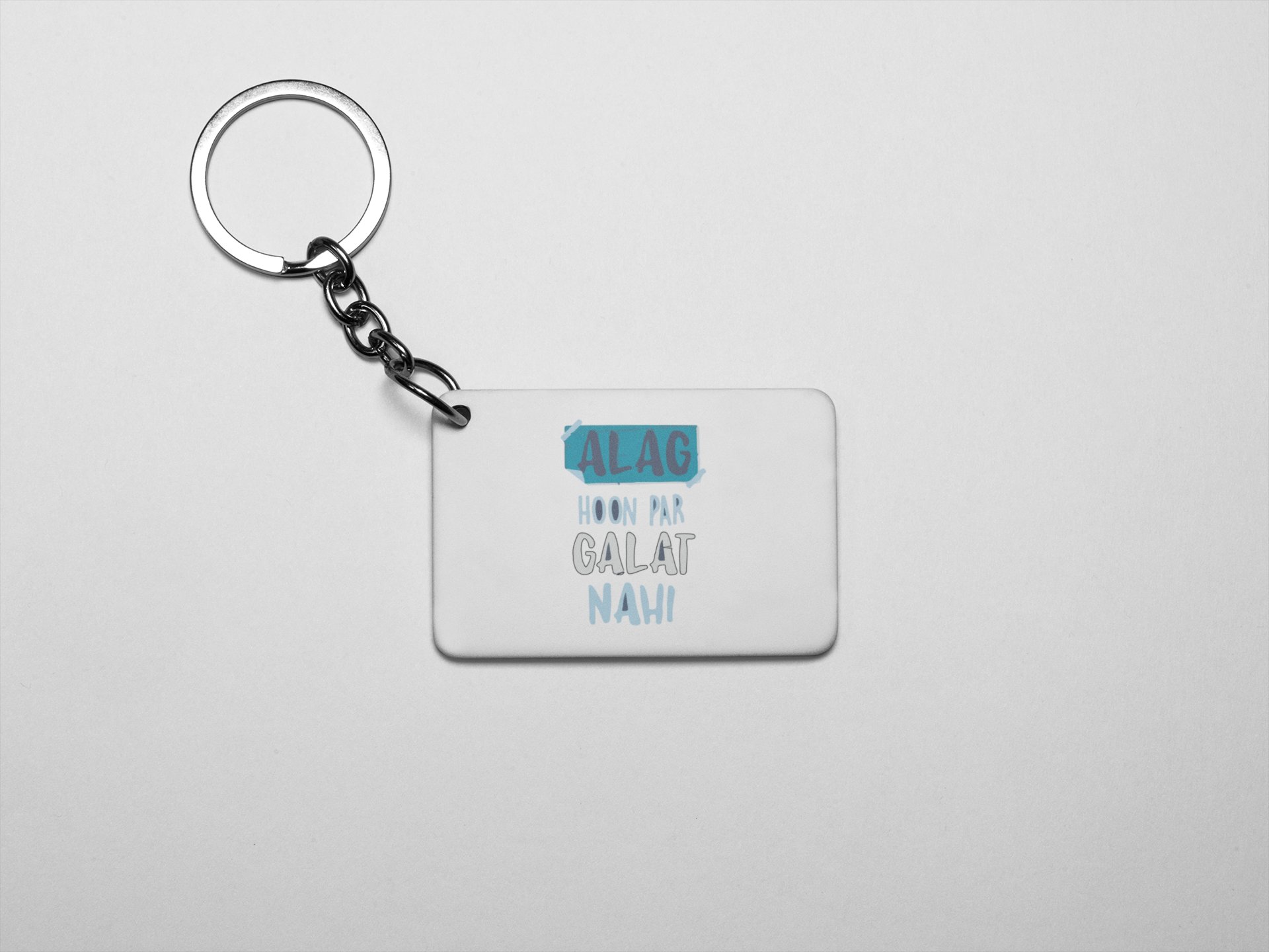 Alag Hoon Par Galat Nahi - acryllic printed white keychains/ keyrings for bollywood lover people(Pack Of 2)