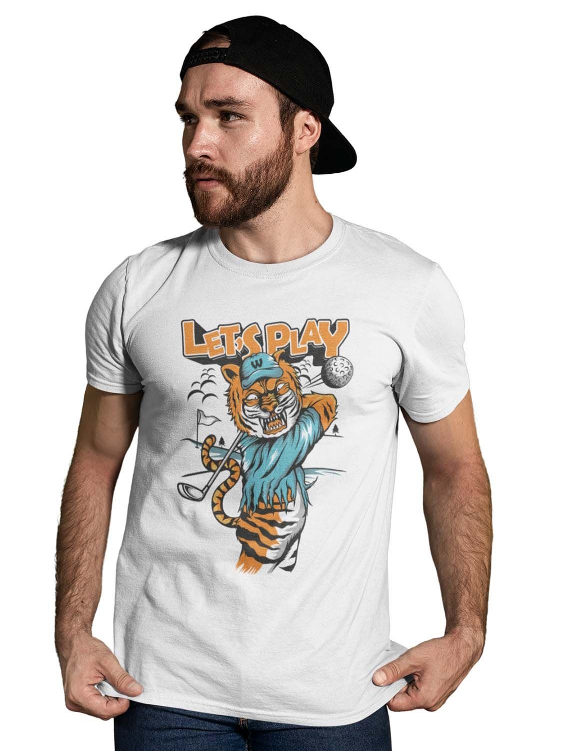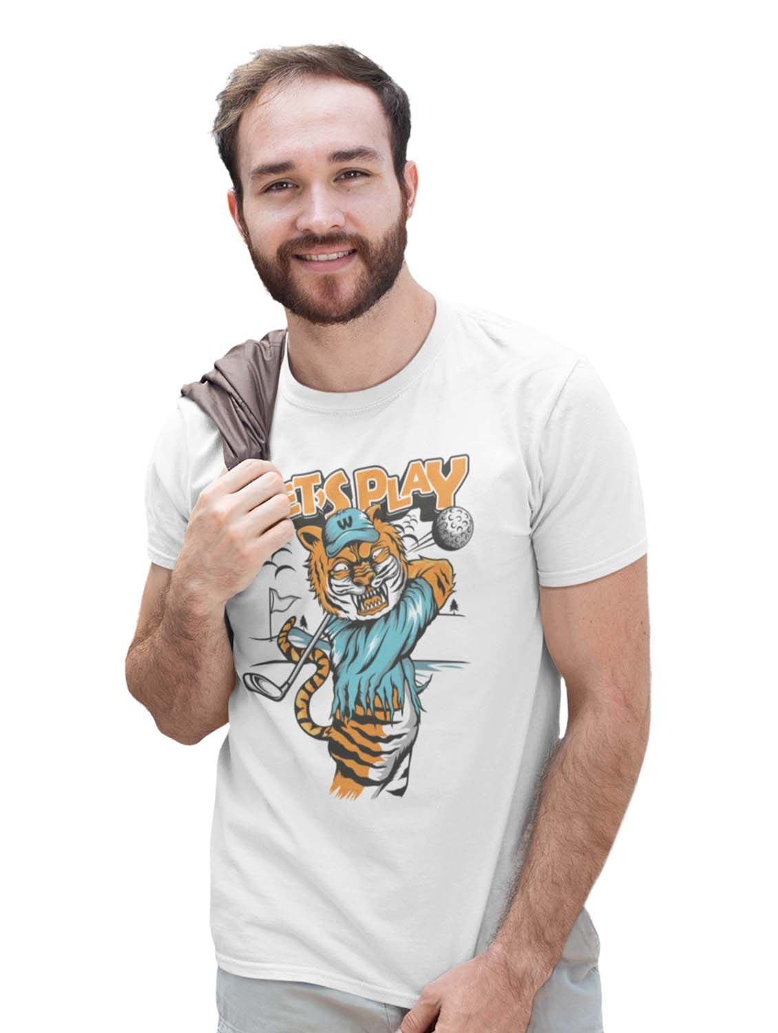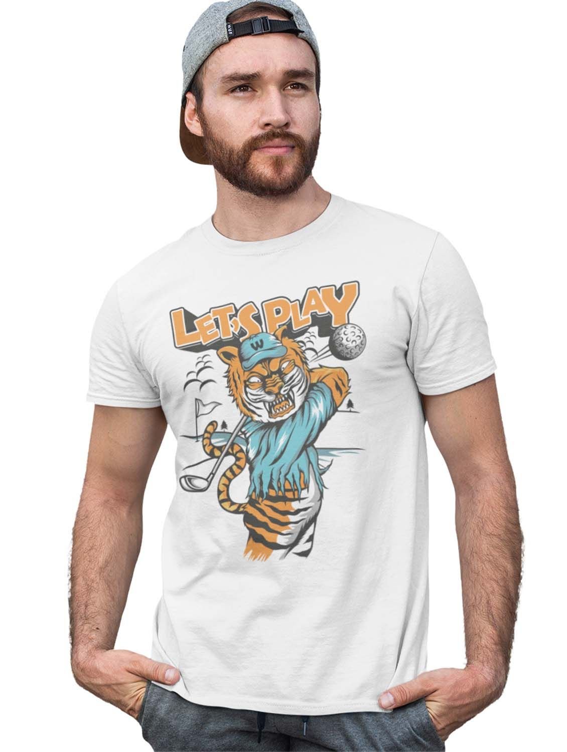 Let's Play White Round Neck Cotton Half Sleeved T-Shirt with Printed Graphics