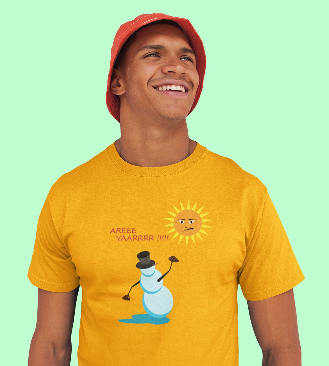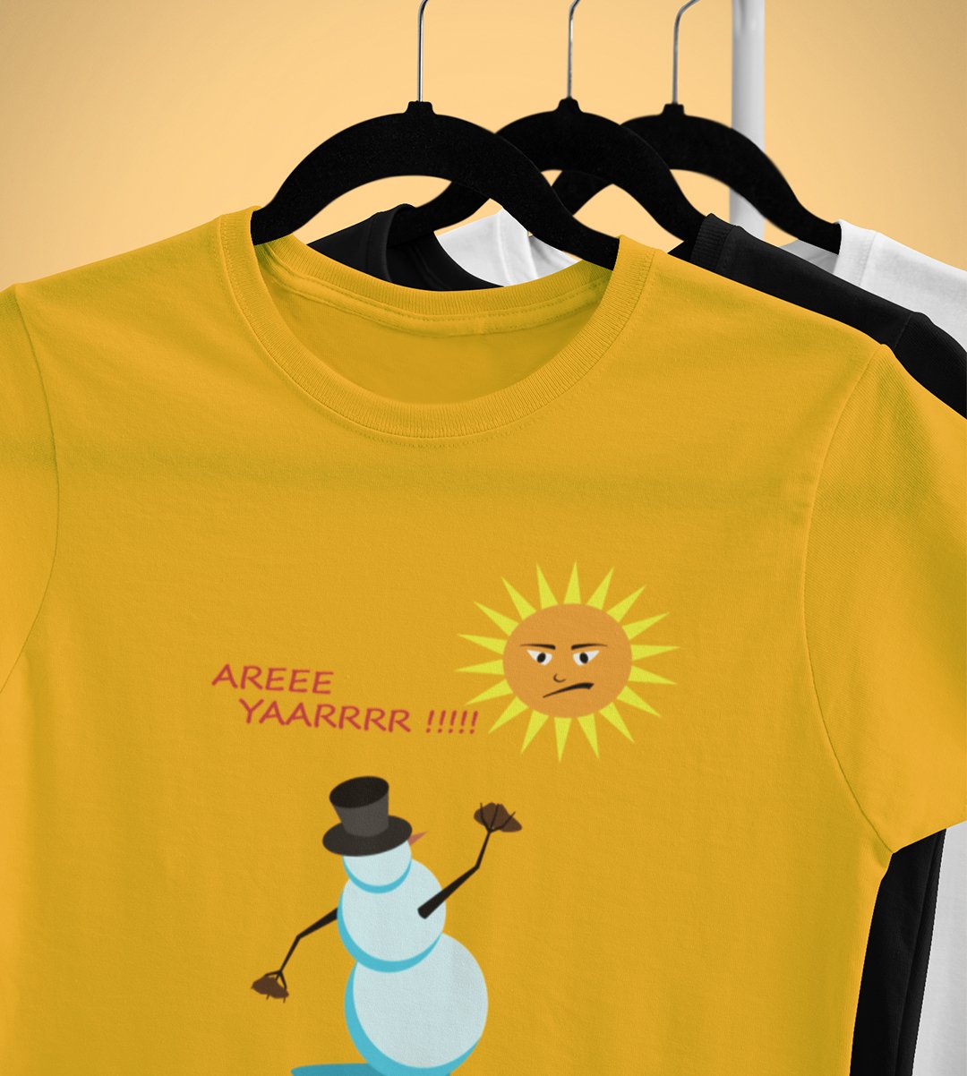 Angry Snowman : Unique Printed T-shirt (Yellow) Best Gift For Boys Girls