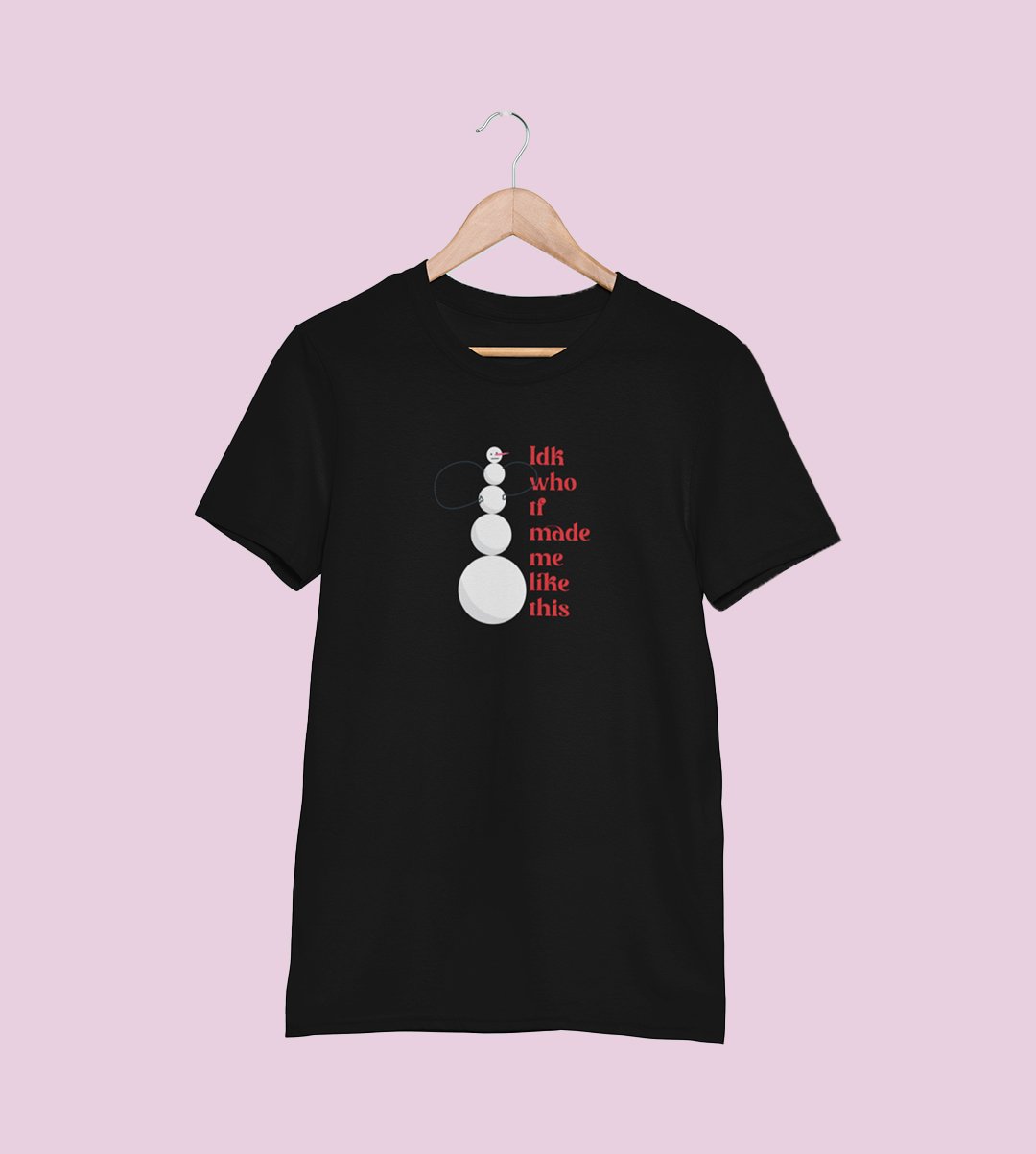 Angry Tall Snowman: Cute Snowman Printed T-shirt (Black) Unique Gift For Secret Santa