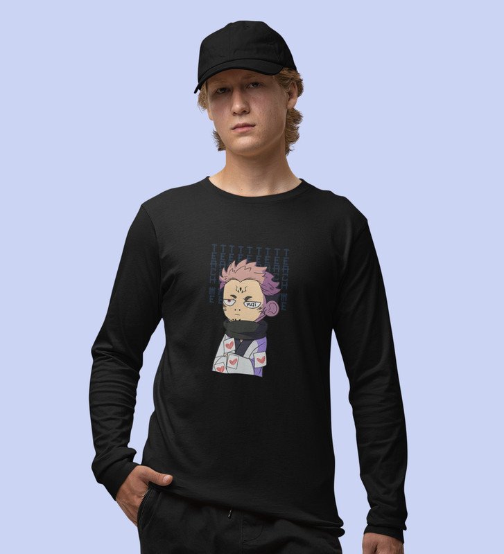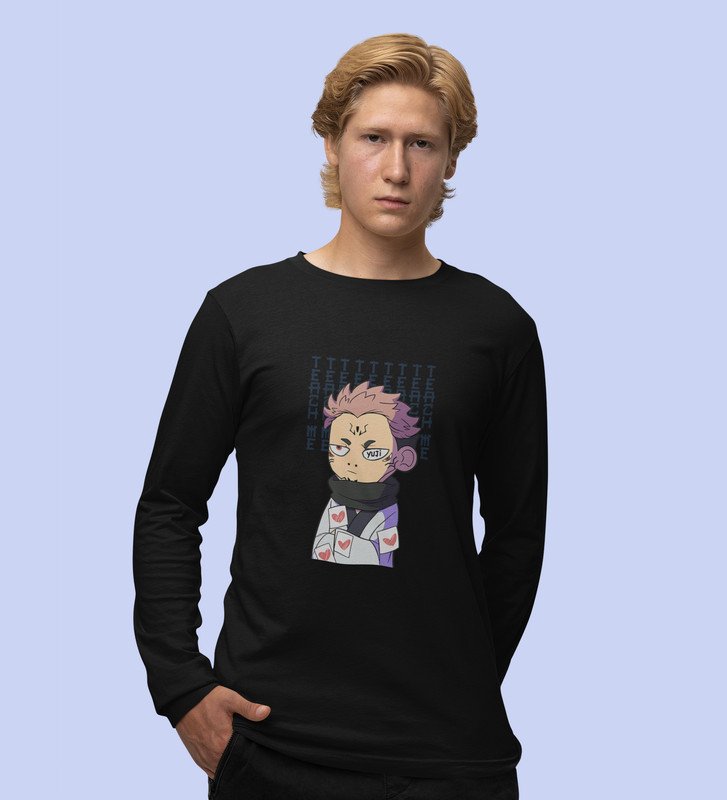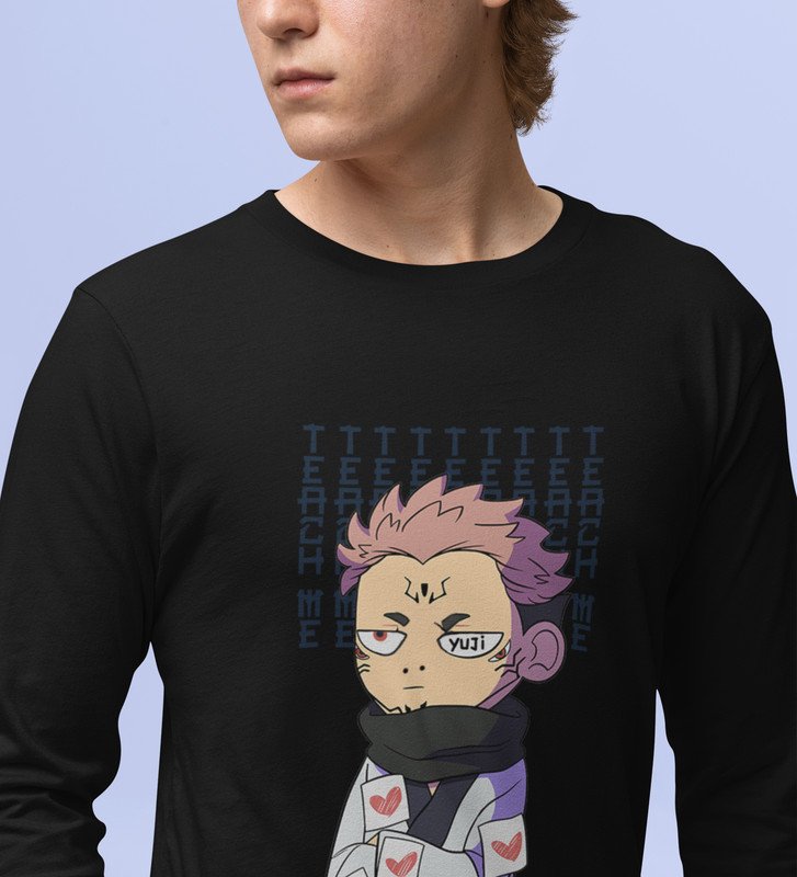 Anime Itadori Printed Cotton Black Full Sleeves Tshirt For Mens and Boys