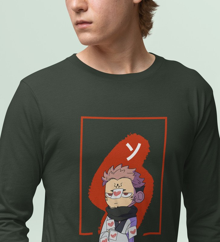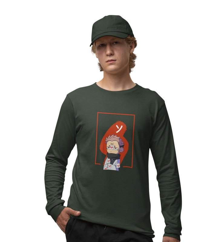 Anime Printed Cotton Green Full Sleeves Tshirt For Mens and Boys