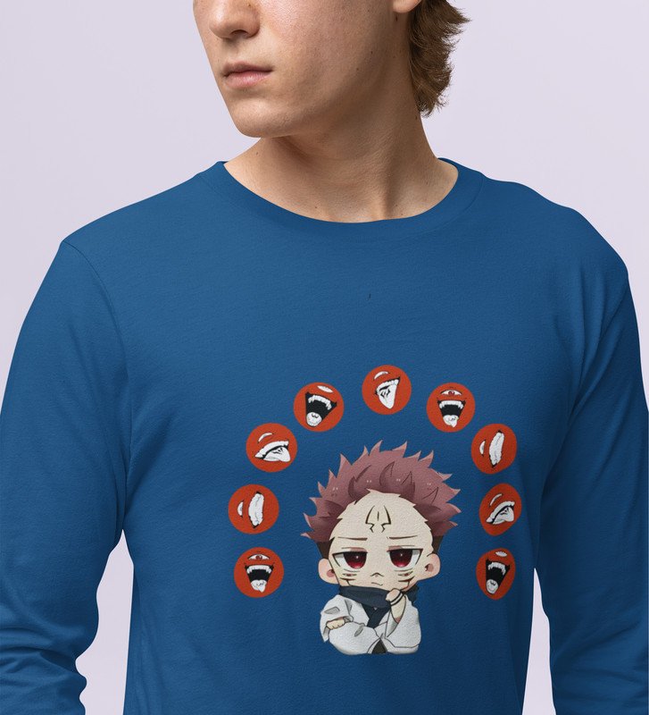 Anime Printed Itadori Cotton Blue Full Sleeves Tshirt For Mens and Boys