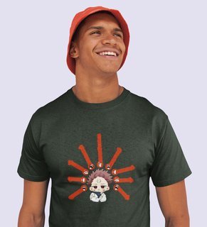 Anime Printed Itadori Cotton Green Tshirt For Mens and Boys
