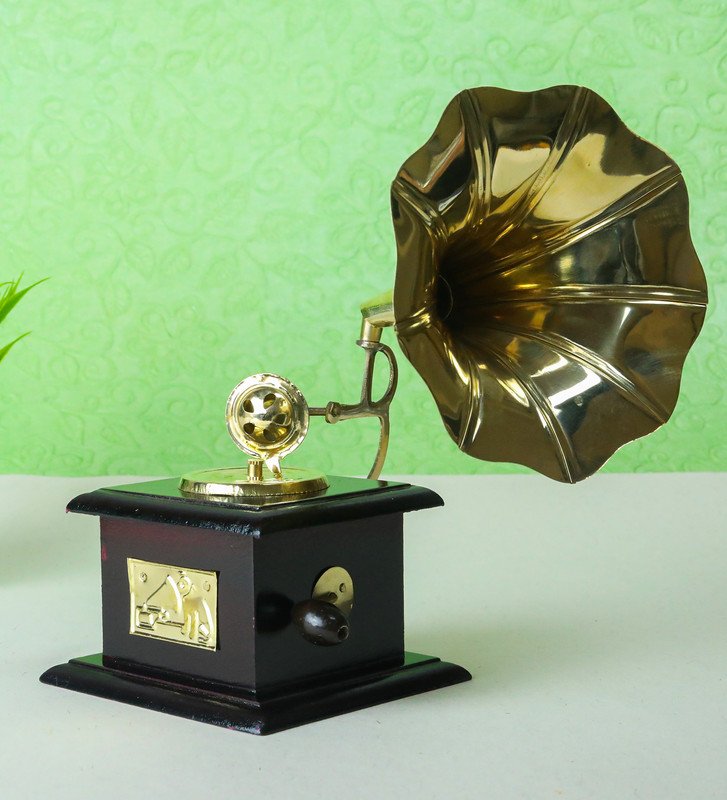 Antique Wooden Handicraft Gramophone Showpiece, Best For Gifting
