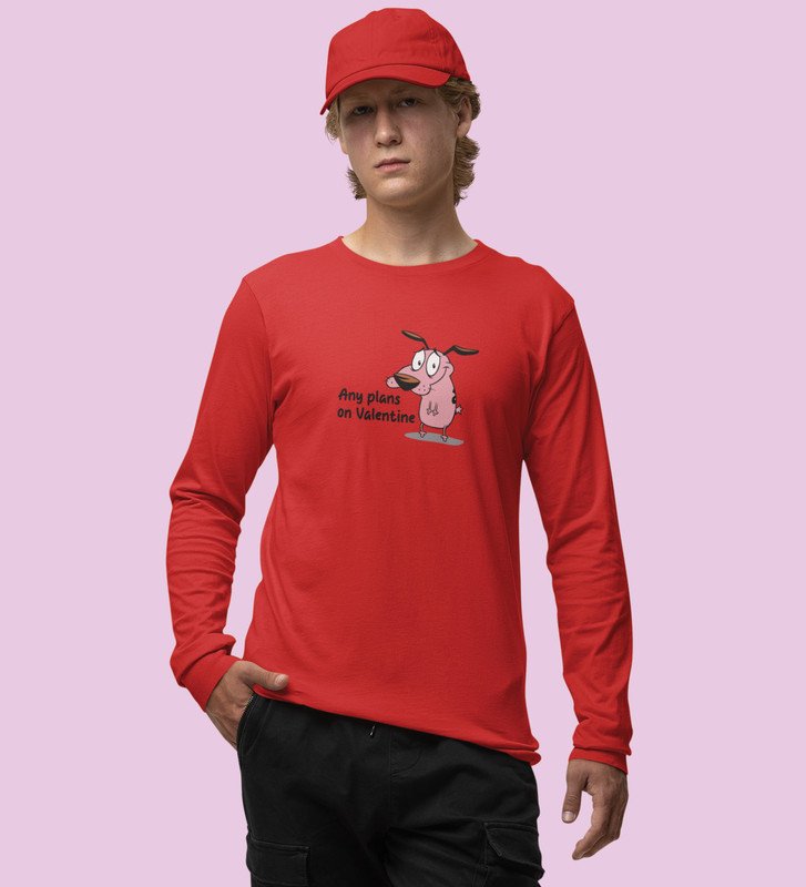 Any Plans On Valentine: Printed (red) Full Sleeve T-Shirt For Singles