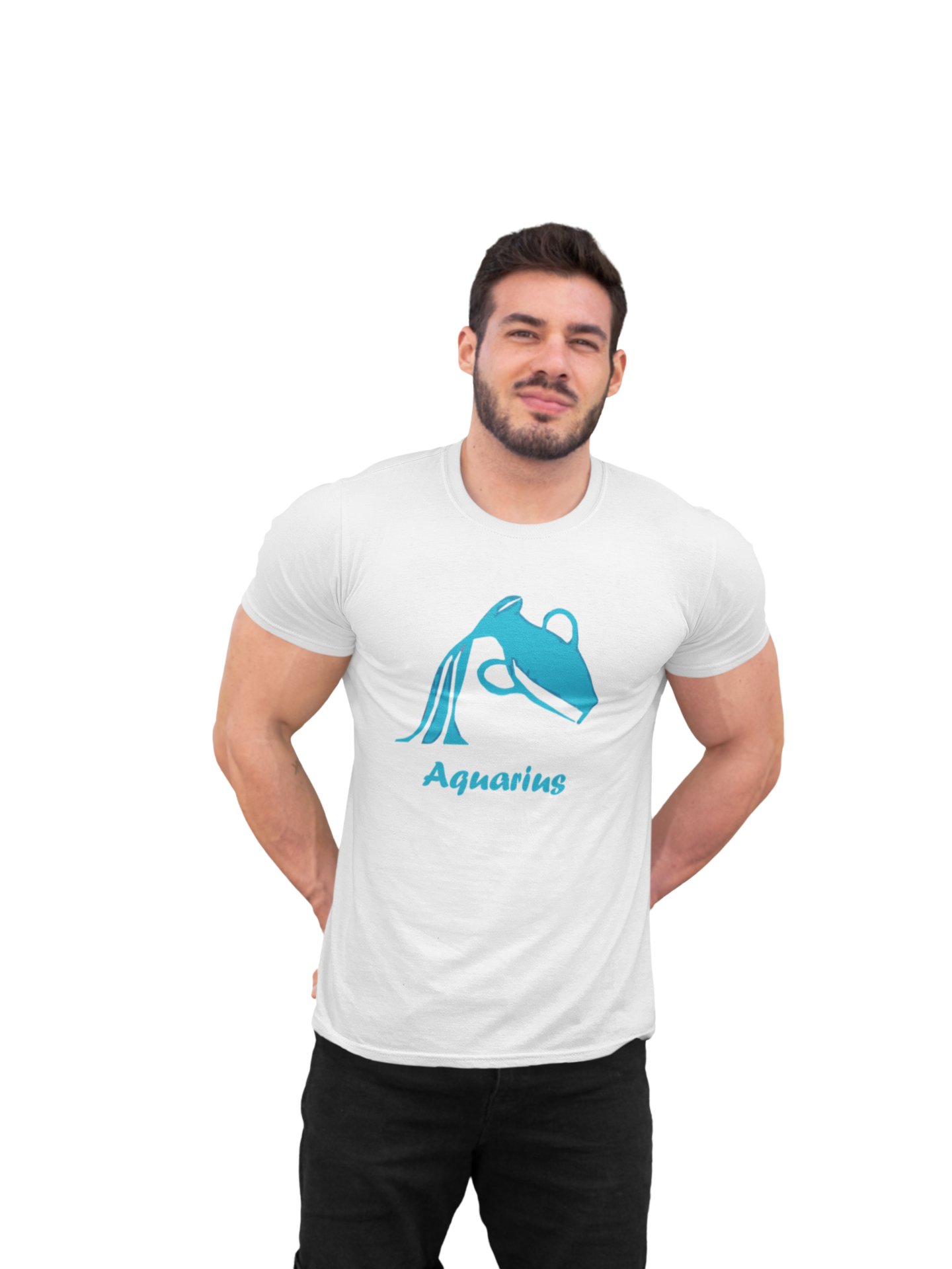 Aquarius (BG Sky Blue) (White T) - Printed Zodiac Sign Tshirts - Made especially for astrology lovers people