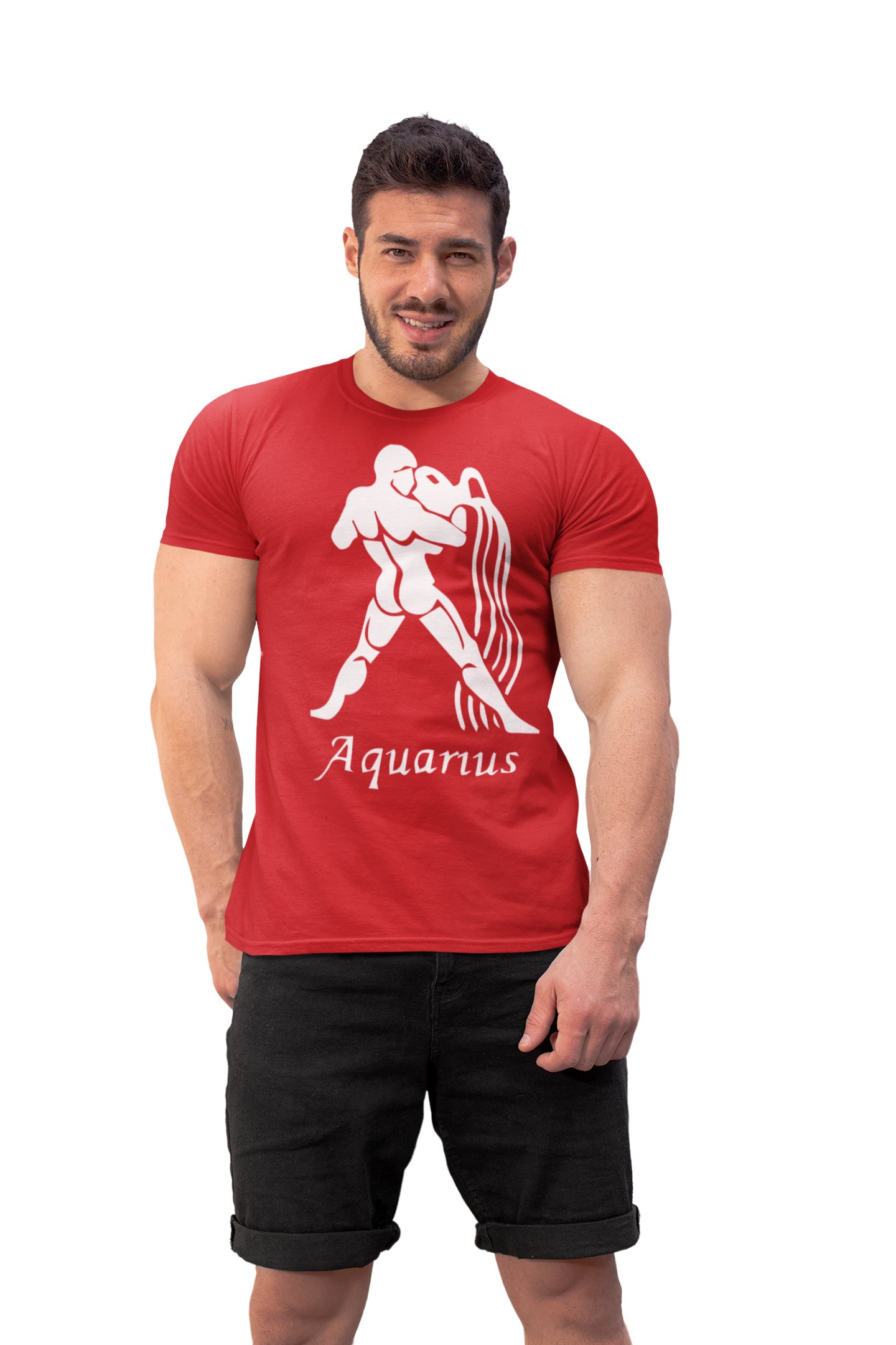 Aquarius (BG white) (Red T) - Printed Zodiac Sign Tshirts - Made especially for astrology lovers people