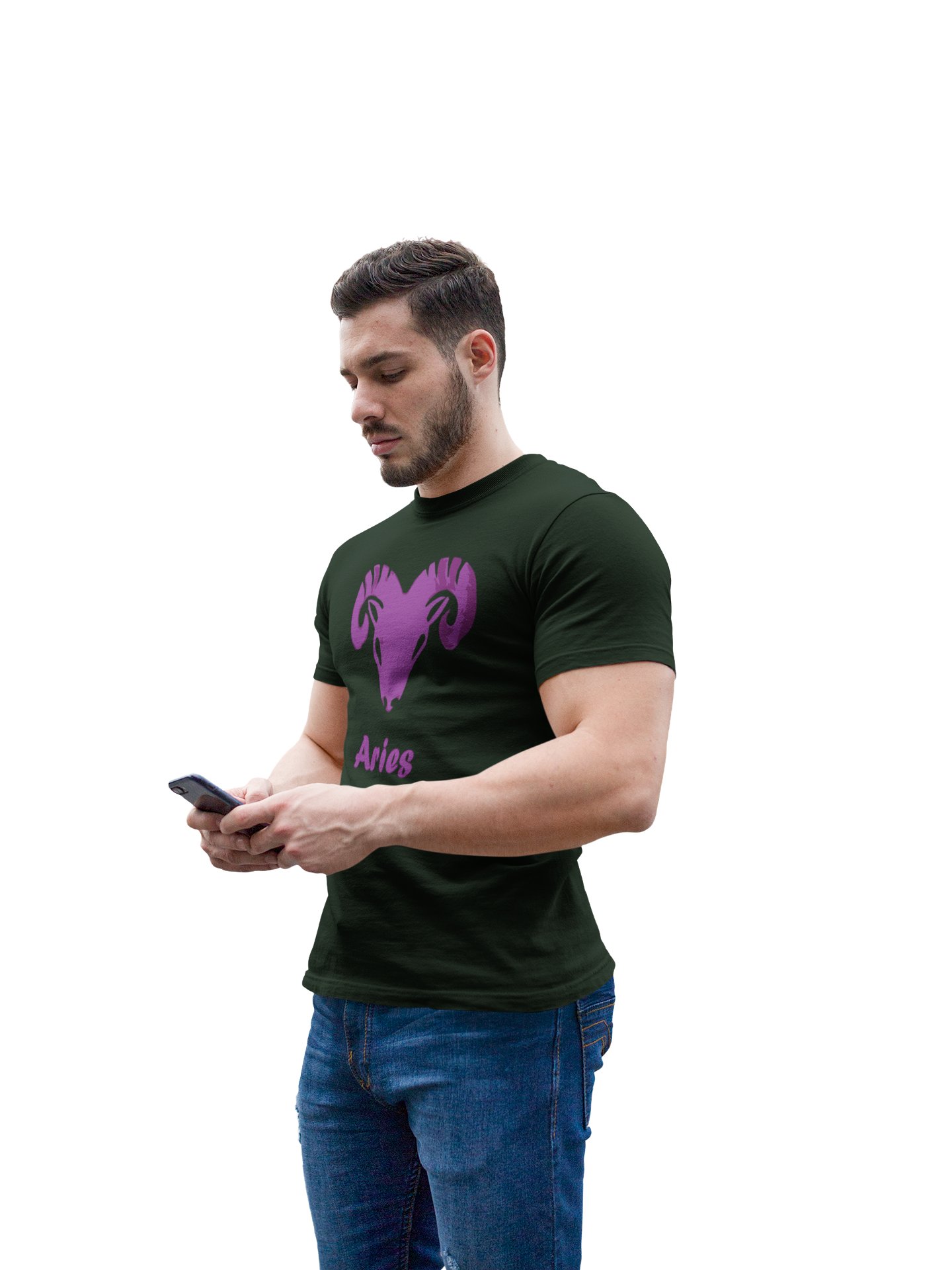 Aries (BG Violet) (Green T) - Printed Zodiac Sign Tshirts - Made especially for astrology lovers people