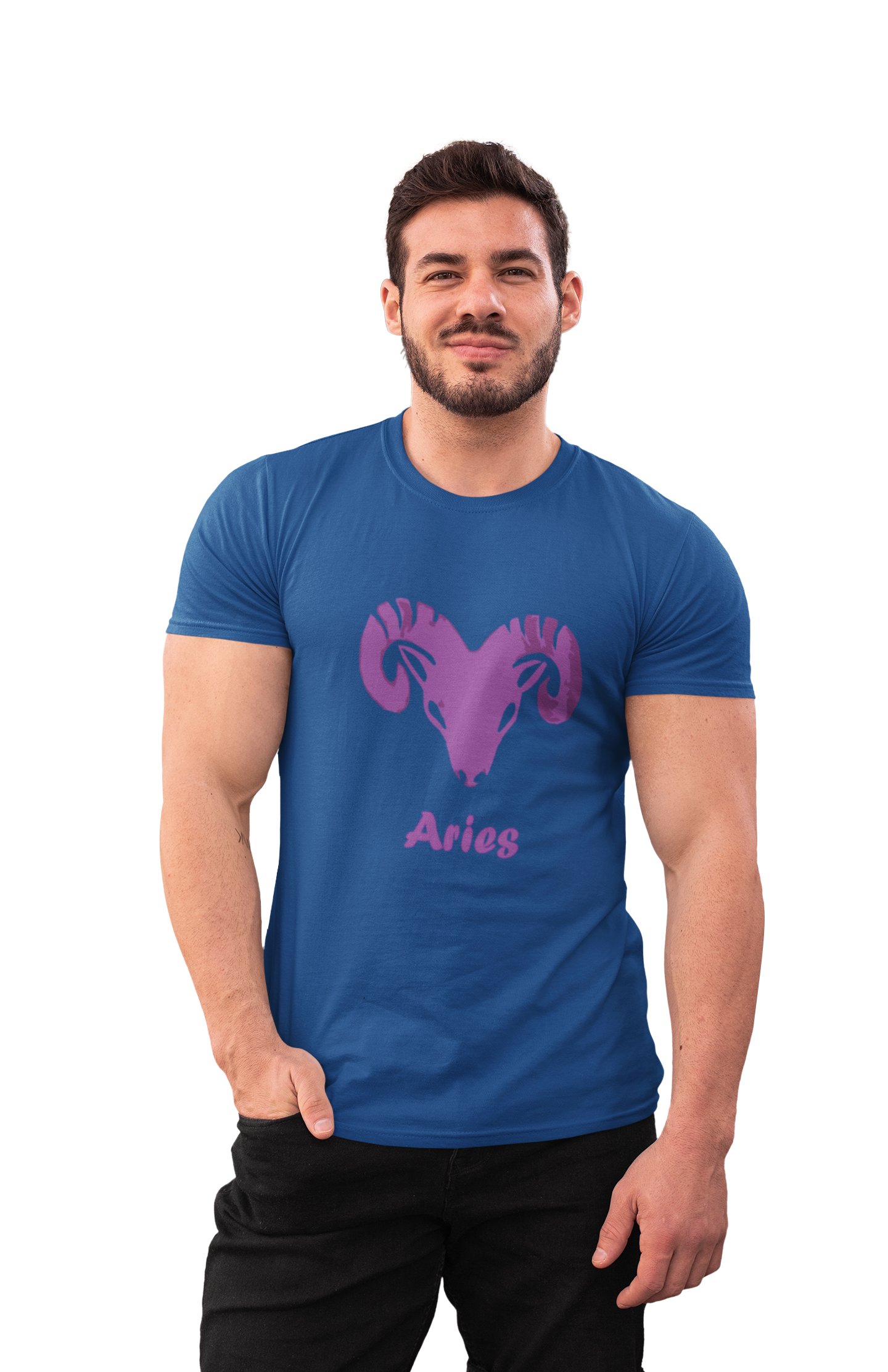 Aries (BG Violet)(Blue T) - Printed Zodiac Sign Tshirts - Made especially for astrology lovers people