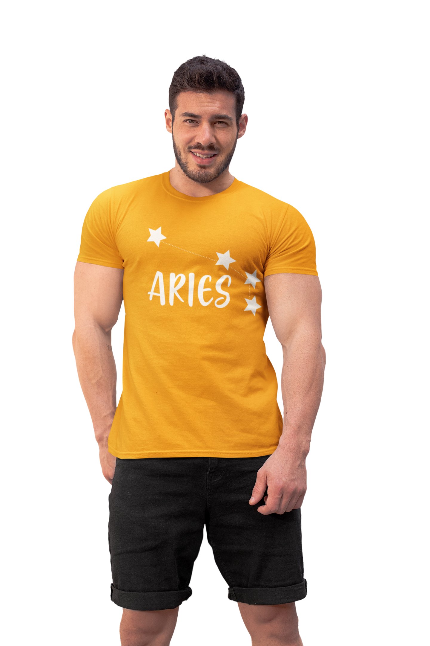 Aries stars (Yellow T) - Printed Zodiac Sign Tshirts - Made especially for astrology lovers people