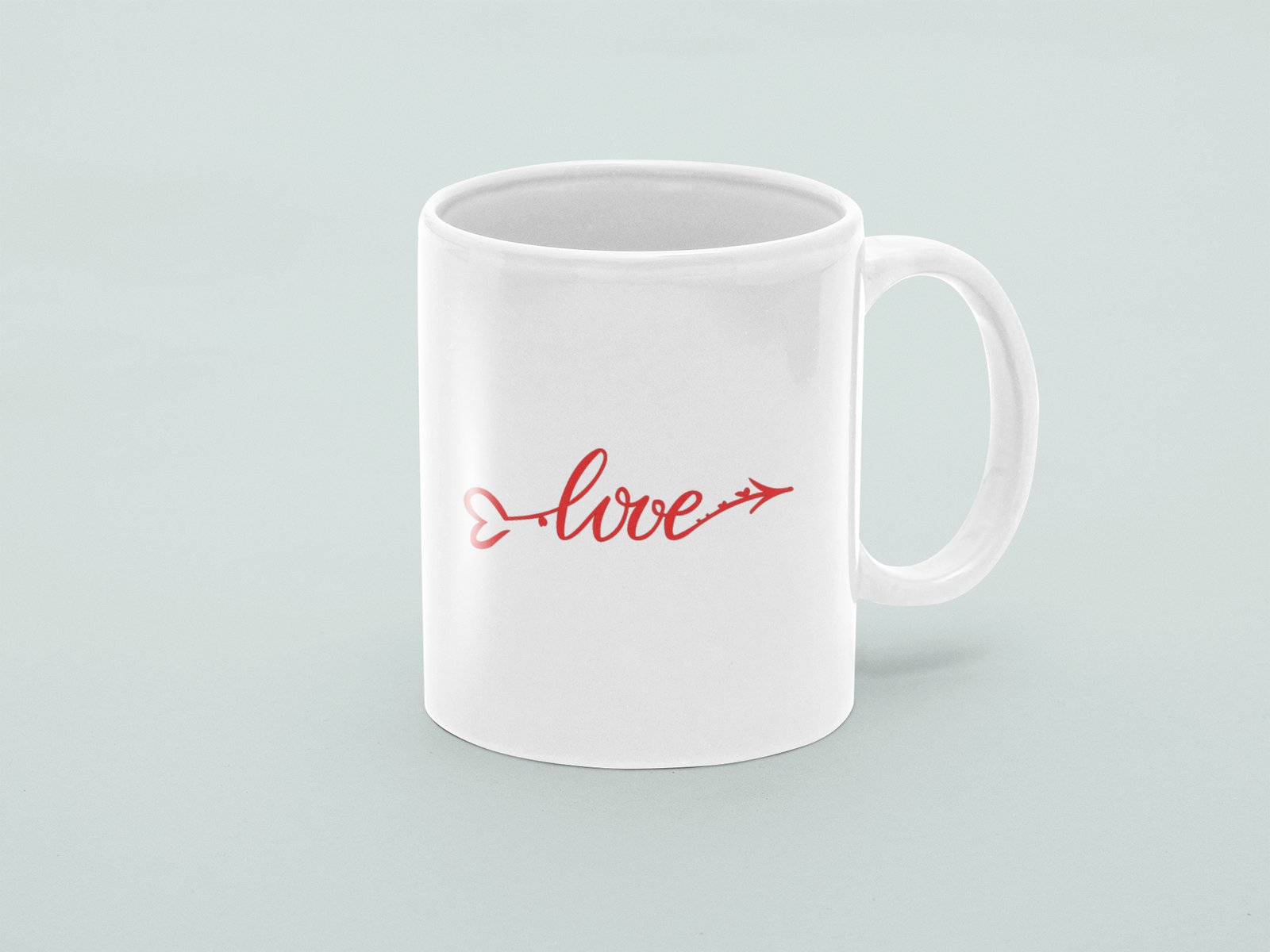 Arrow Of Love text - valentine themed printed ceramic white coffee and tea mugs/ cups