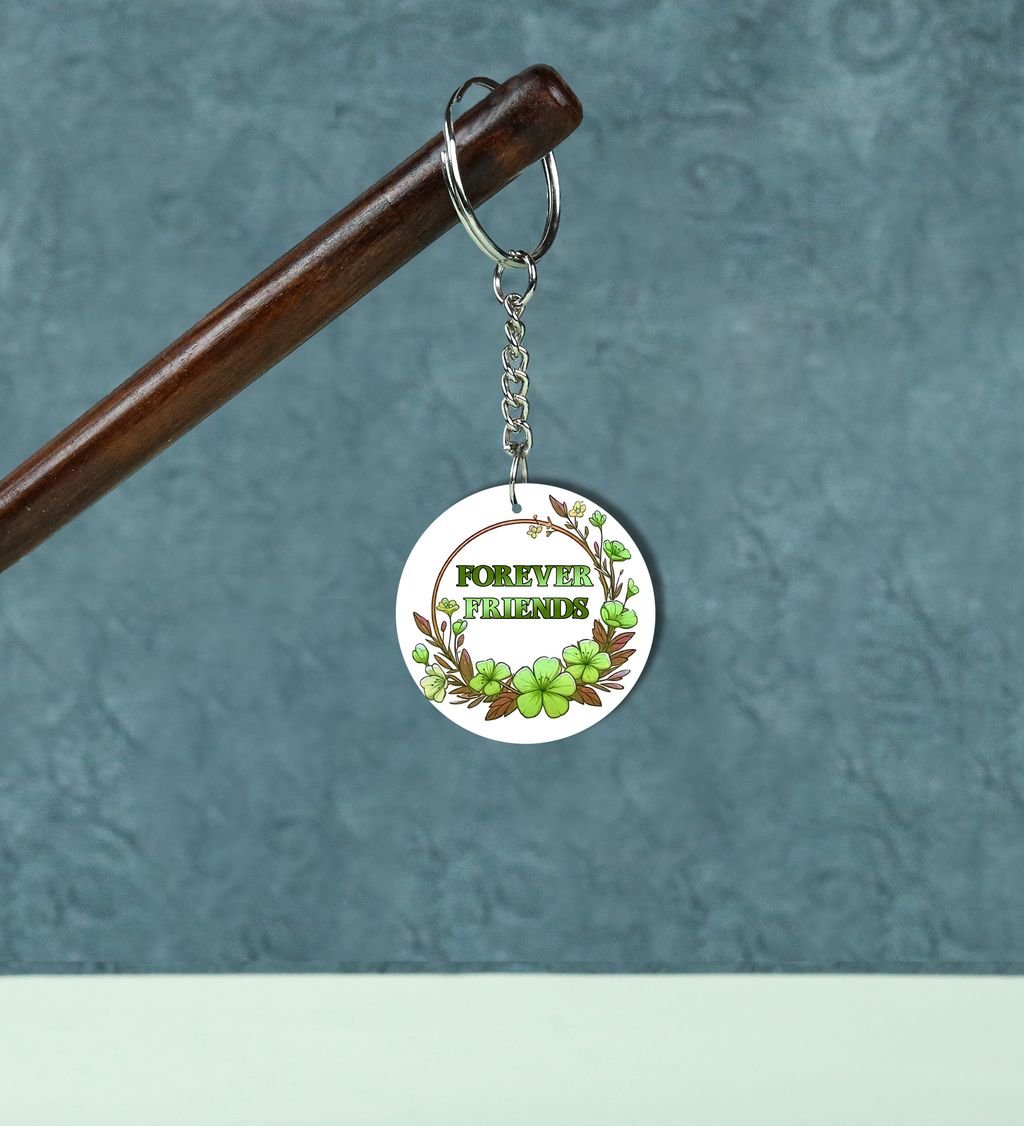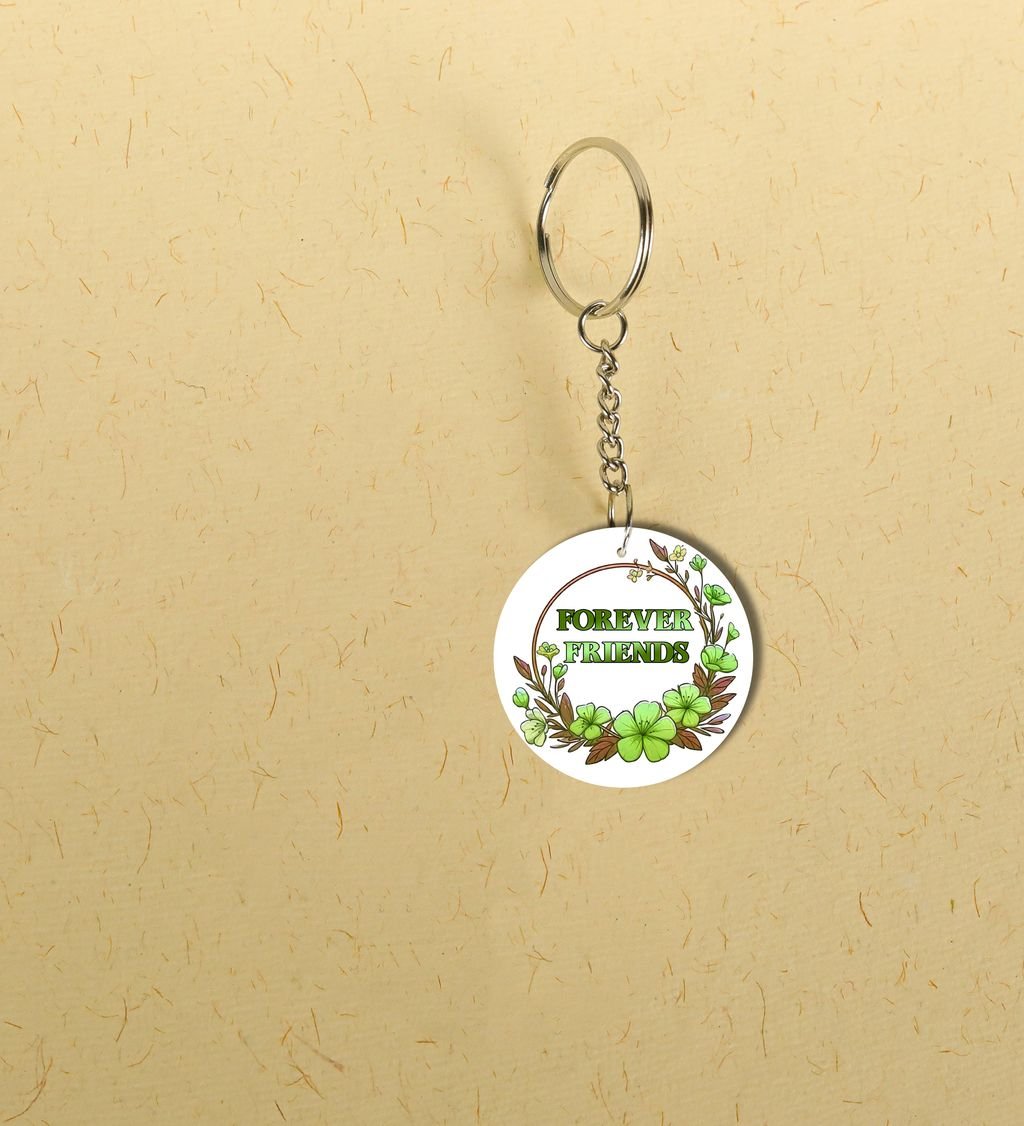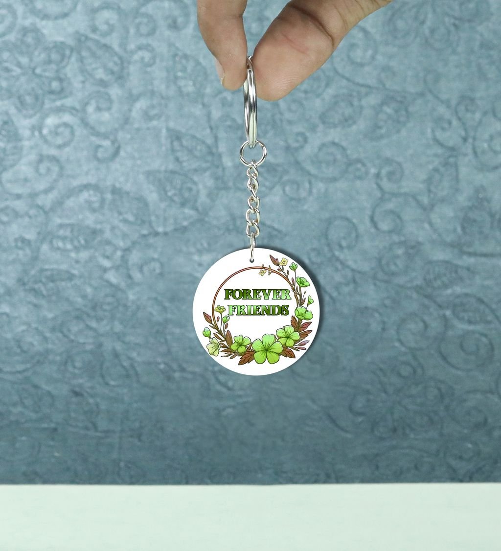 Artistic Friendship Circle in Green Blooms: Printed Round Keychain Pack of 2
