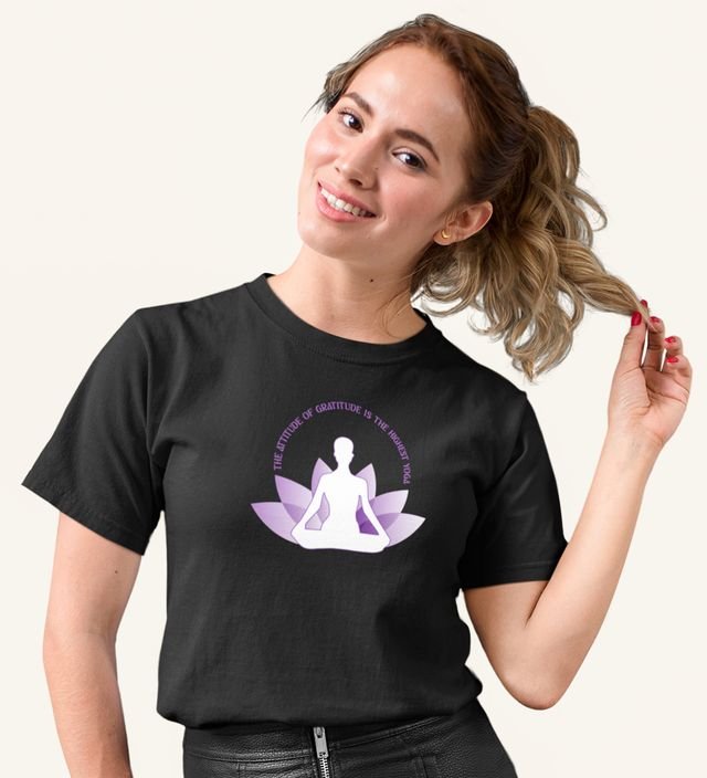 Attitude Of Gratitude Black Round Neck Cotton Half Sleeved WomenT-Shirt with Printed Graphics