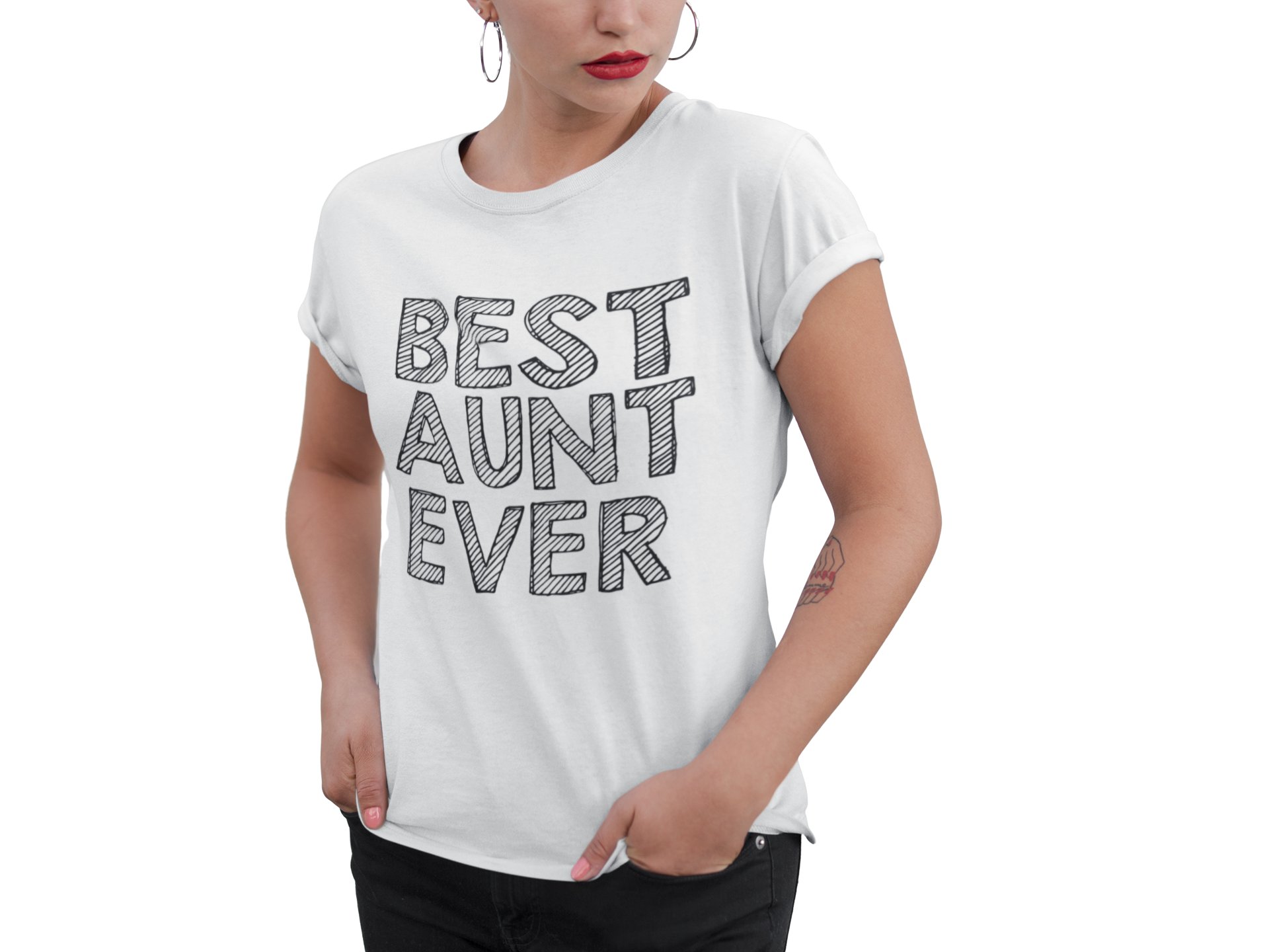 Aunt-printed family themed cotton blended half-sleeve t-shirts made for women (white)