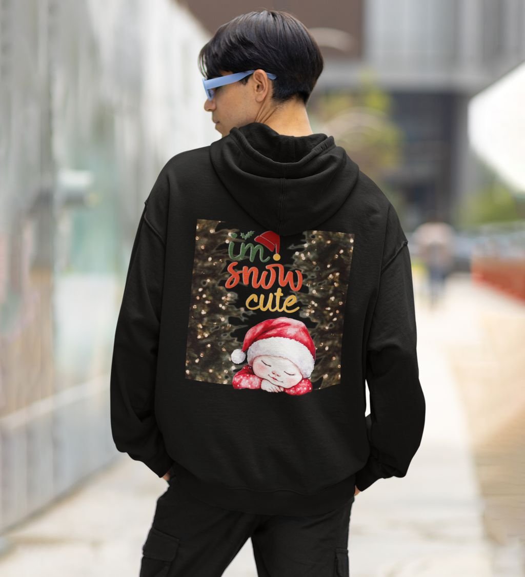 Baby Napping in a Santa Hat with My Snow Adorable Festive Design Printed Black Cotton Hoodie