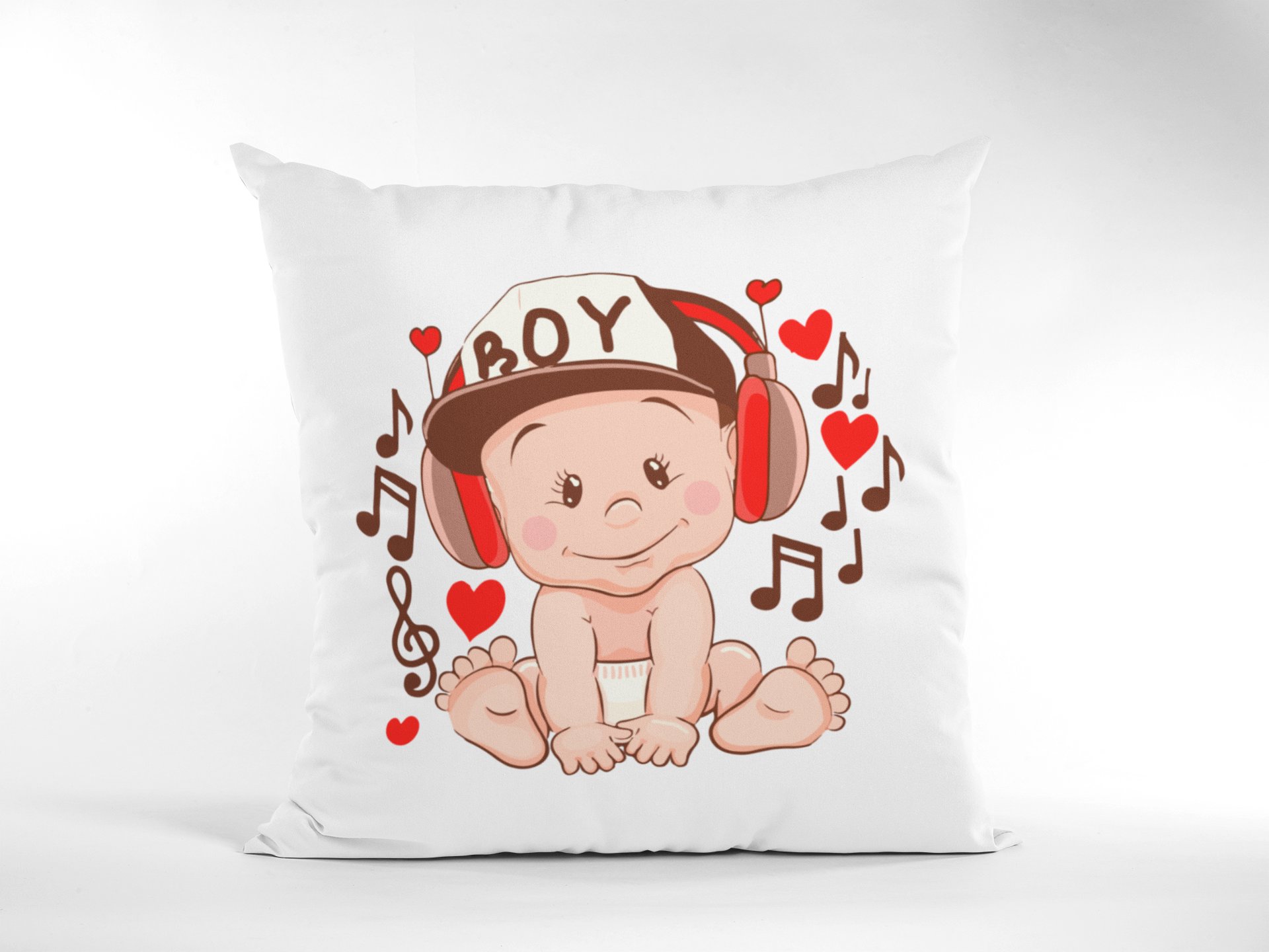 Baby With Headphone- Special Printed Pillow Covers For Music Lovers(Combo Set of 2)