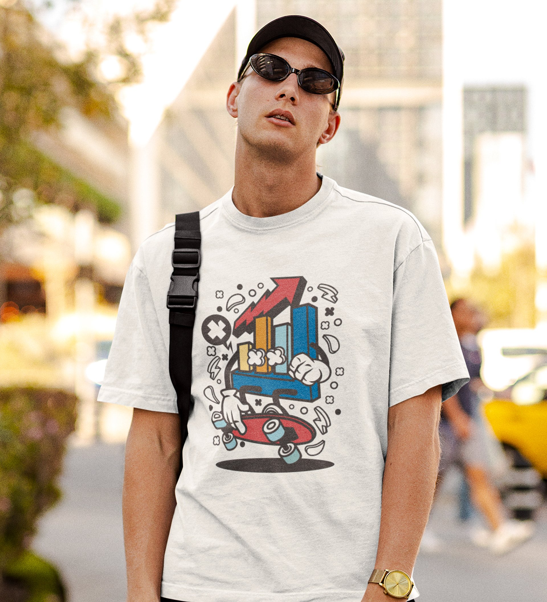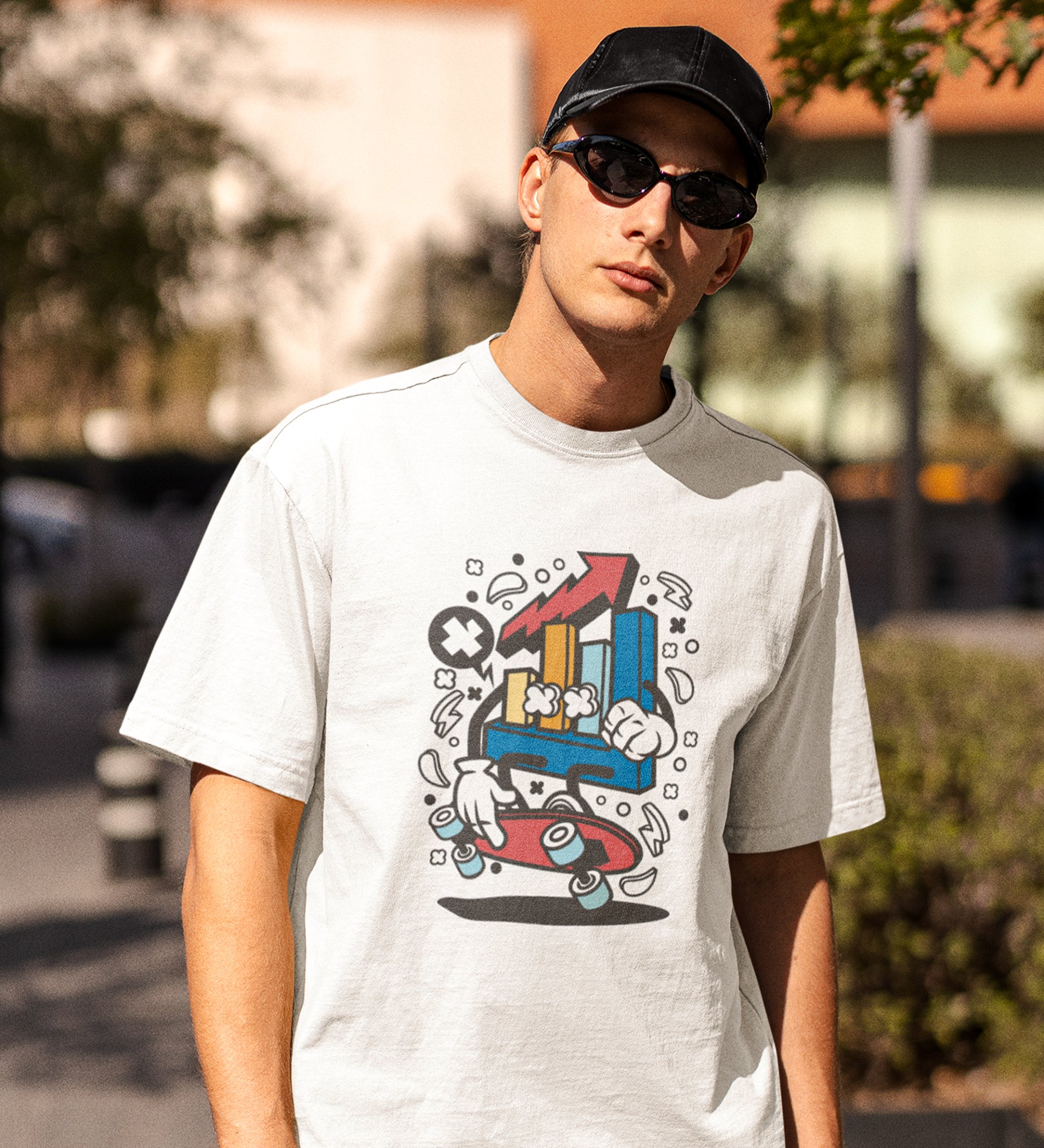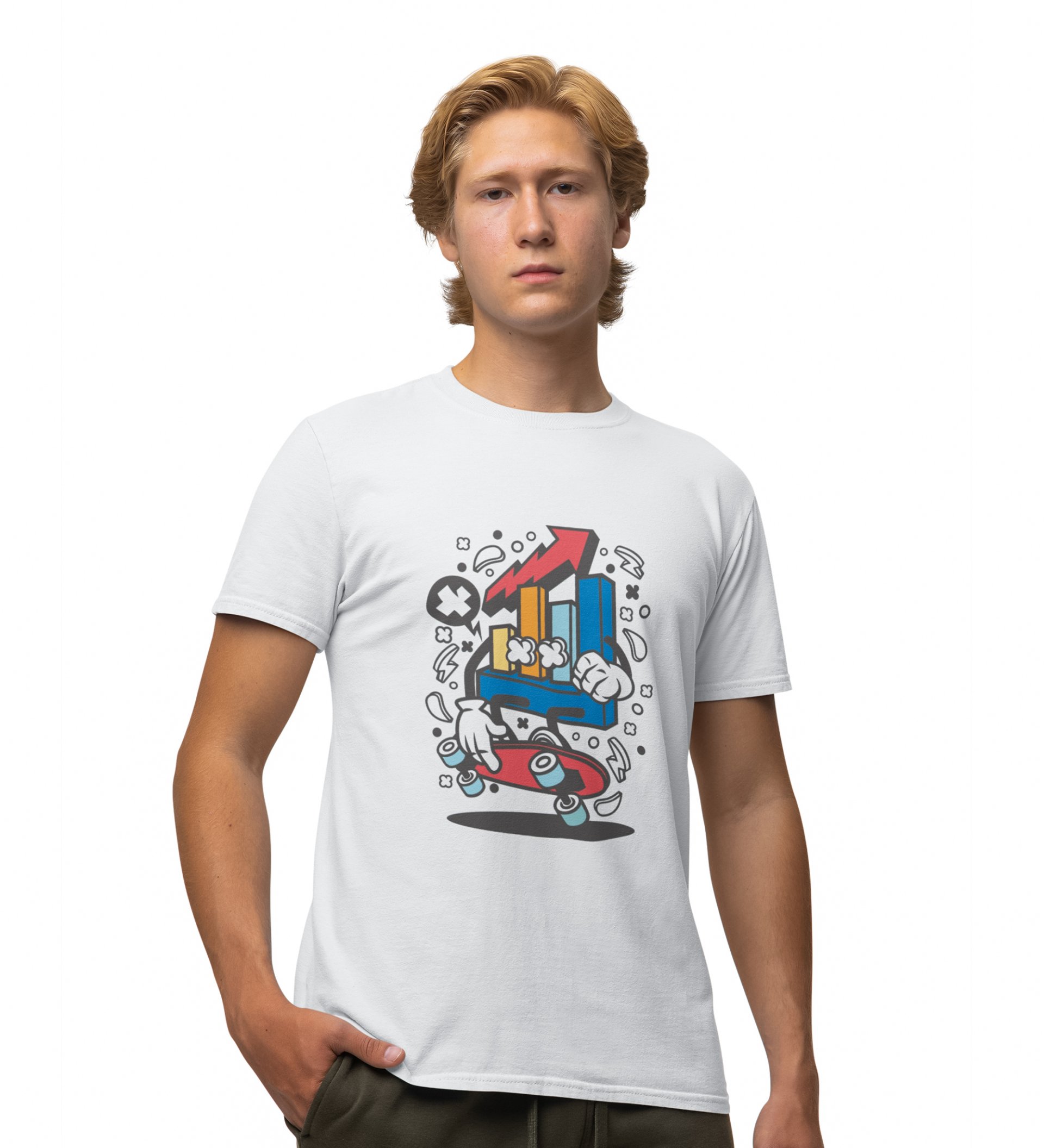 The Rising Skate Bar White Round Neck Cotton Half Sleeved Men's T-Shirt with Printed Graphics