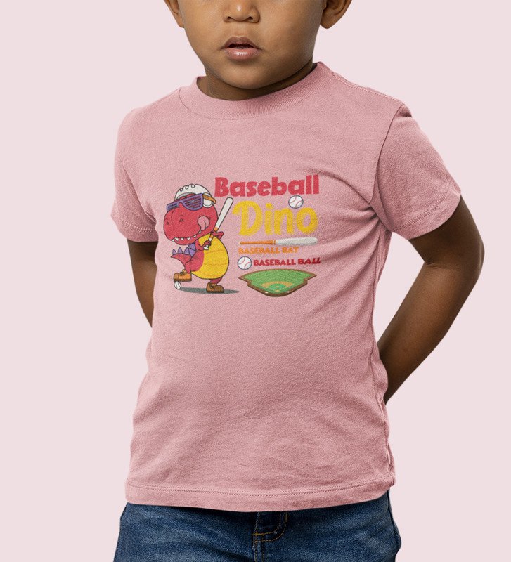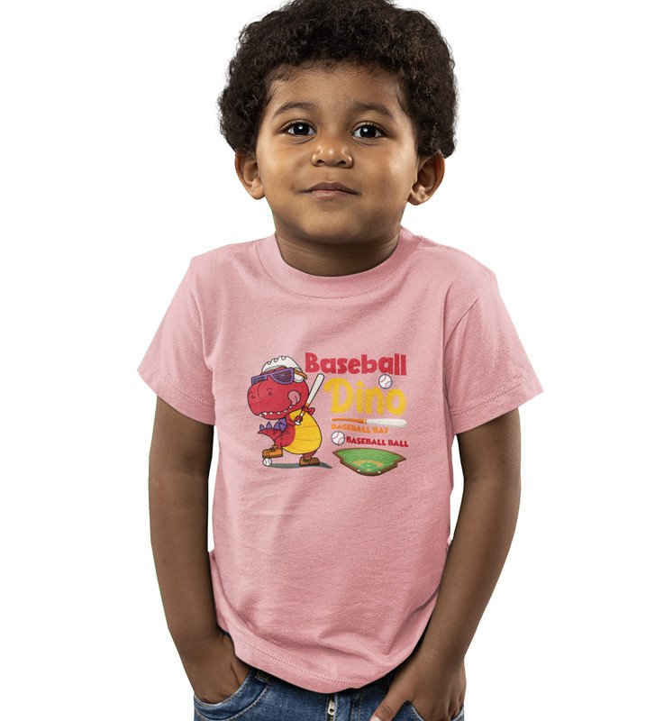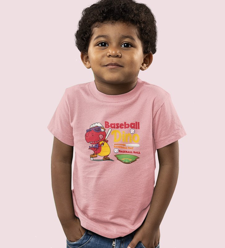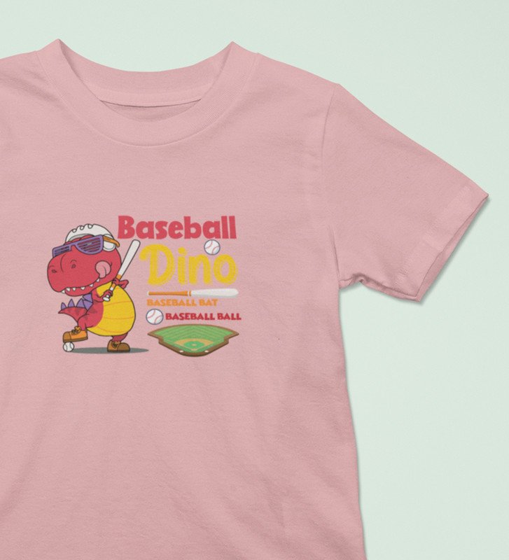 Baseballer Dino, Boys Round Neck Blended Cotton Tshirt