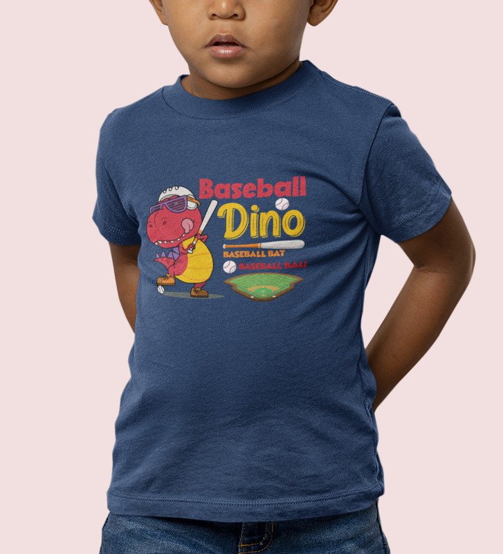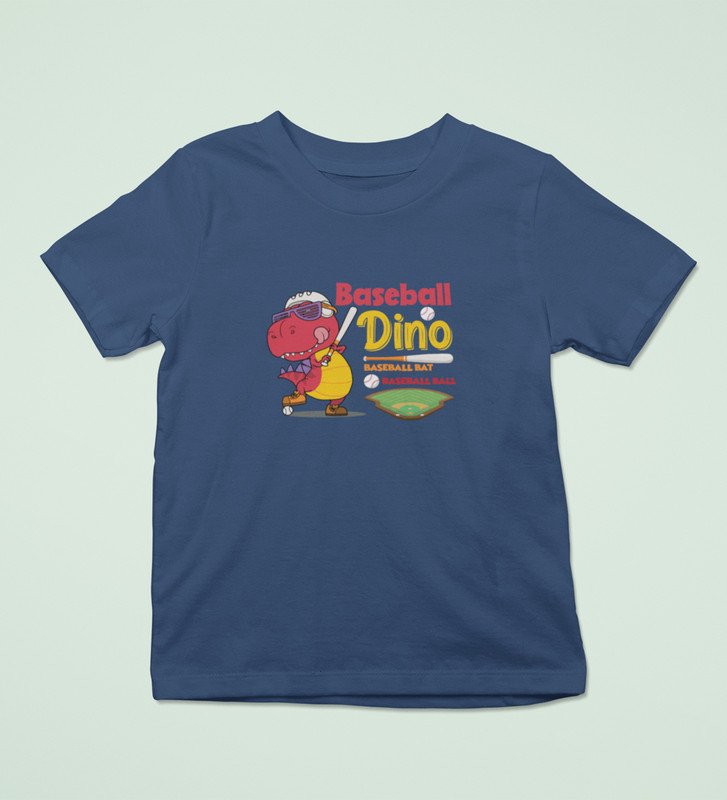 Baseballer Dino, Boys Round Neck Blended Cotton Tshirt