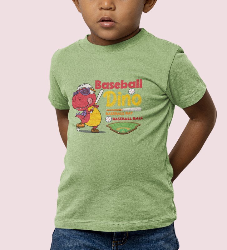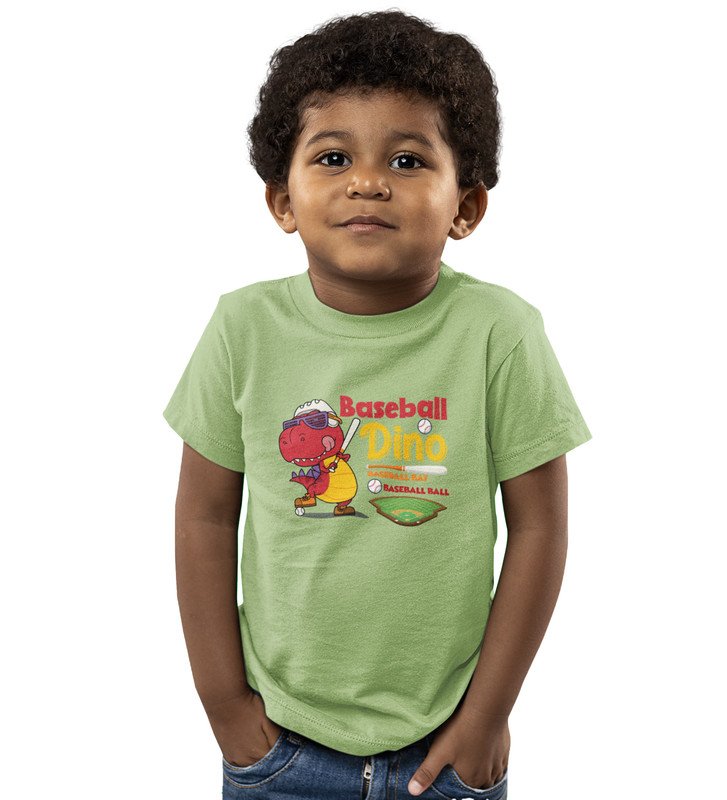 Baseballer Dino, Boys Round Neck Blended Cotton Tshirt
