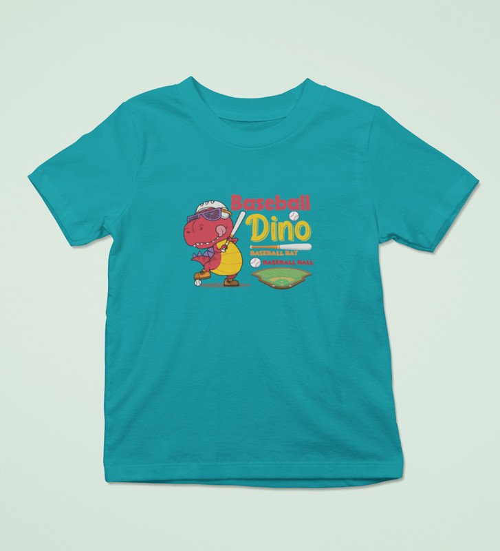 Baseballer Dino, Boys Round Neck Blended Cotton Tshirt