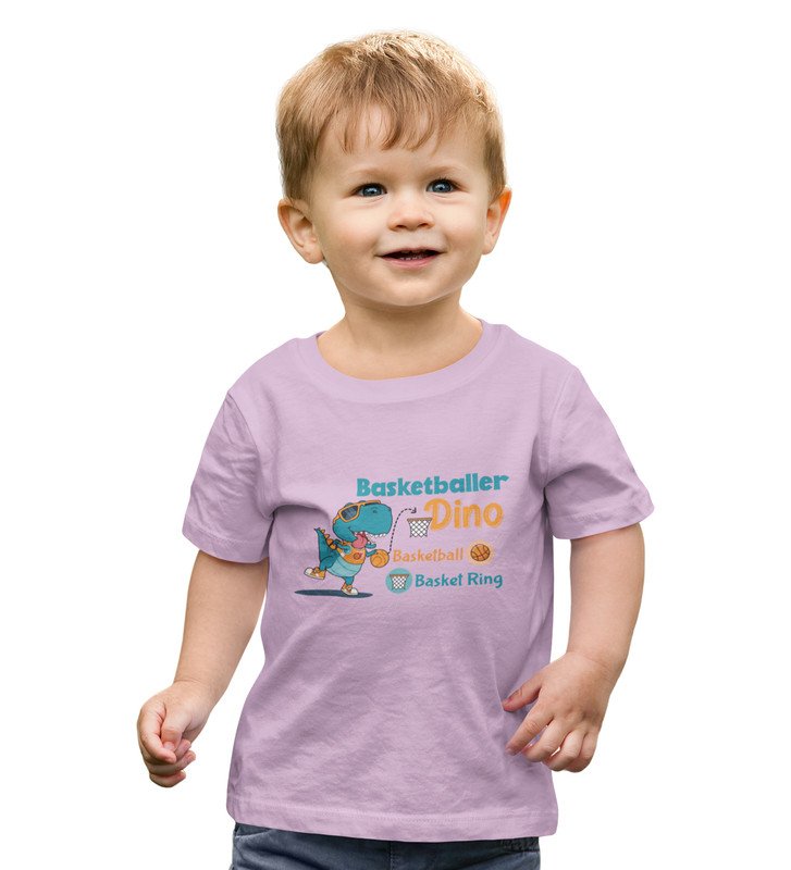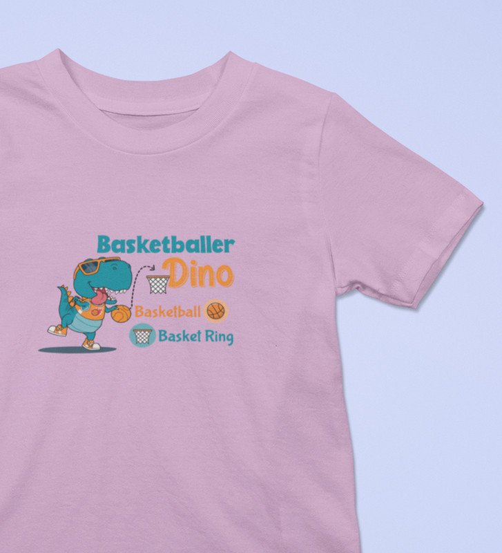 Basketballer Dino, Printed Cotton T-shirt (Purple) for Boys