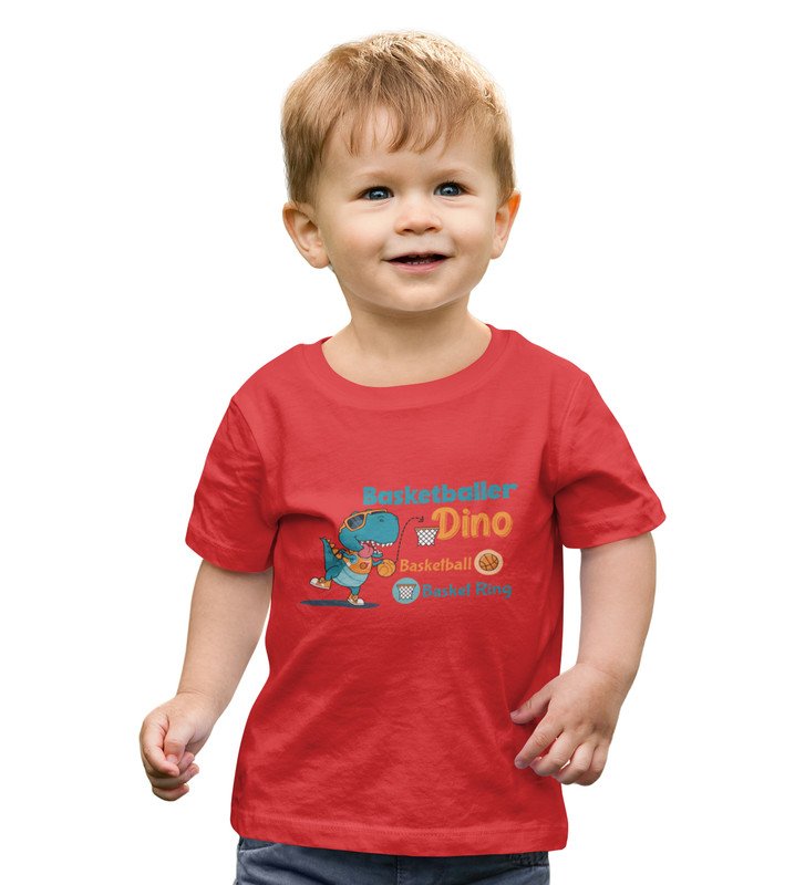 Basketballer Dino, Printed Cotton T-shirt (Red) for Boys